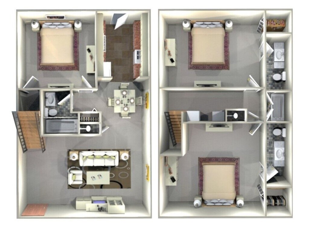 2 Dormitorios, 1 Baño, 900 pies²Galería del Modelo