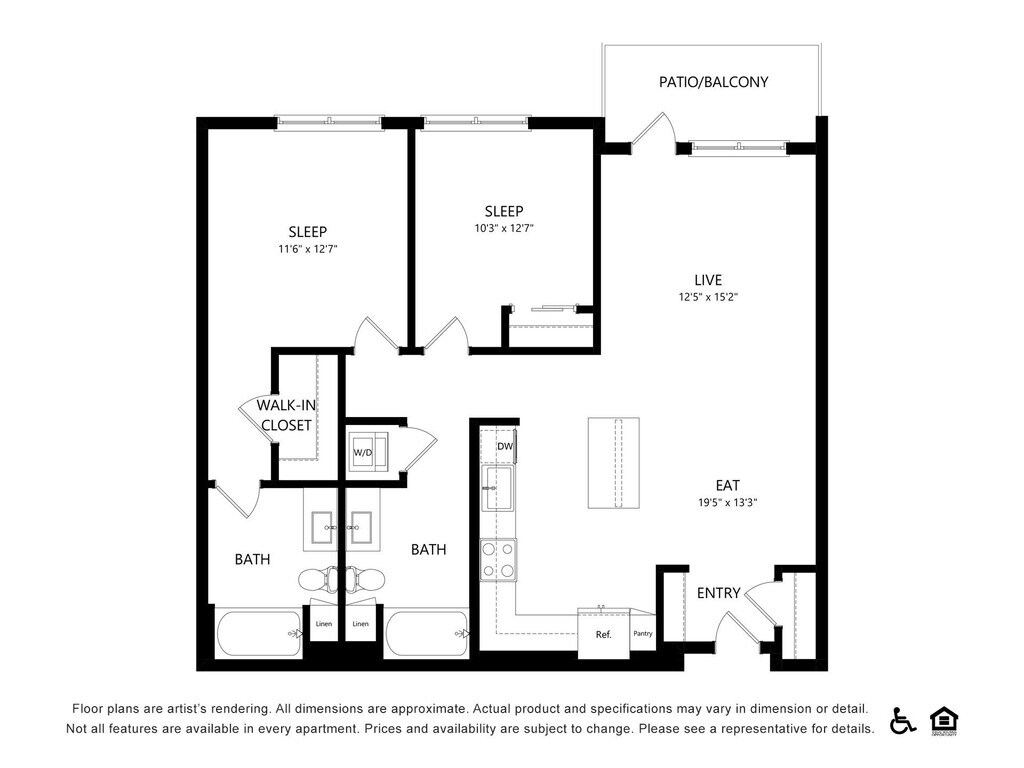 Modelo de apartamento: B5Llame para Precios2 Dormitorios, 2 Baños, 1116 sq ftNo DisponibleB5 - Plano 1 Plano: B2