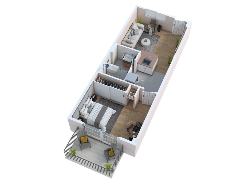 1 Dormitorio, 1 Baño, 500 pies²Disponible AhoraGalería del Modelo