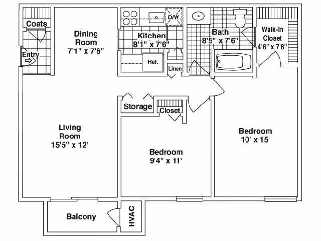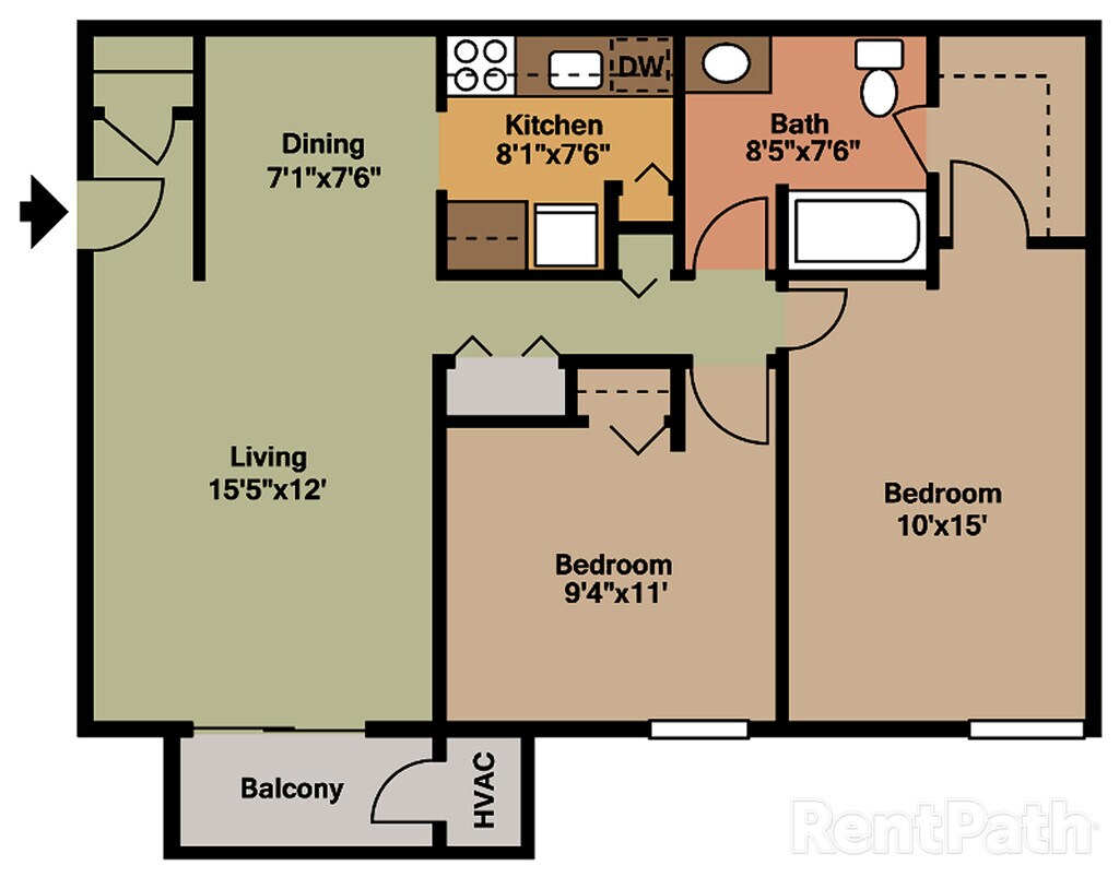 201 - 2 Bdrm, 1Bath - Plano 3 ![]()