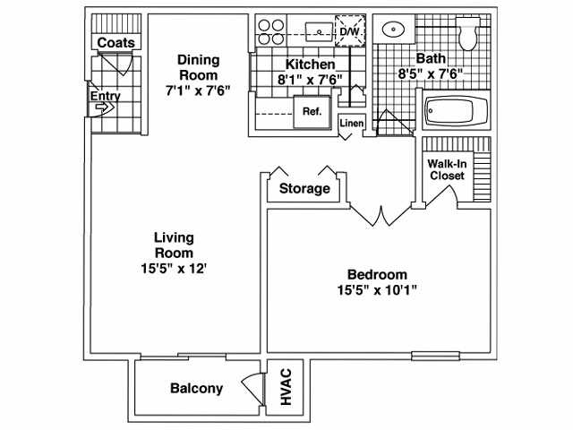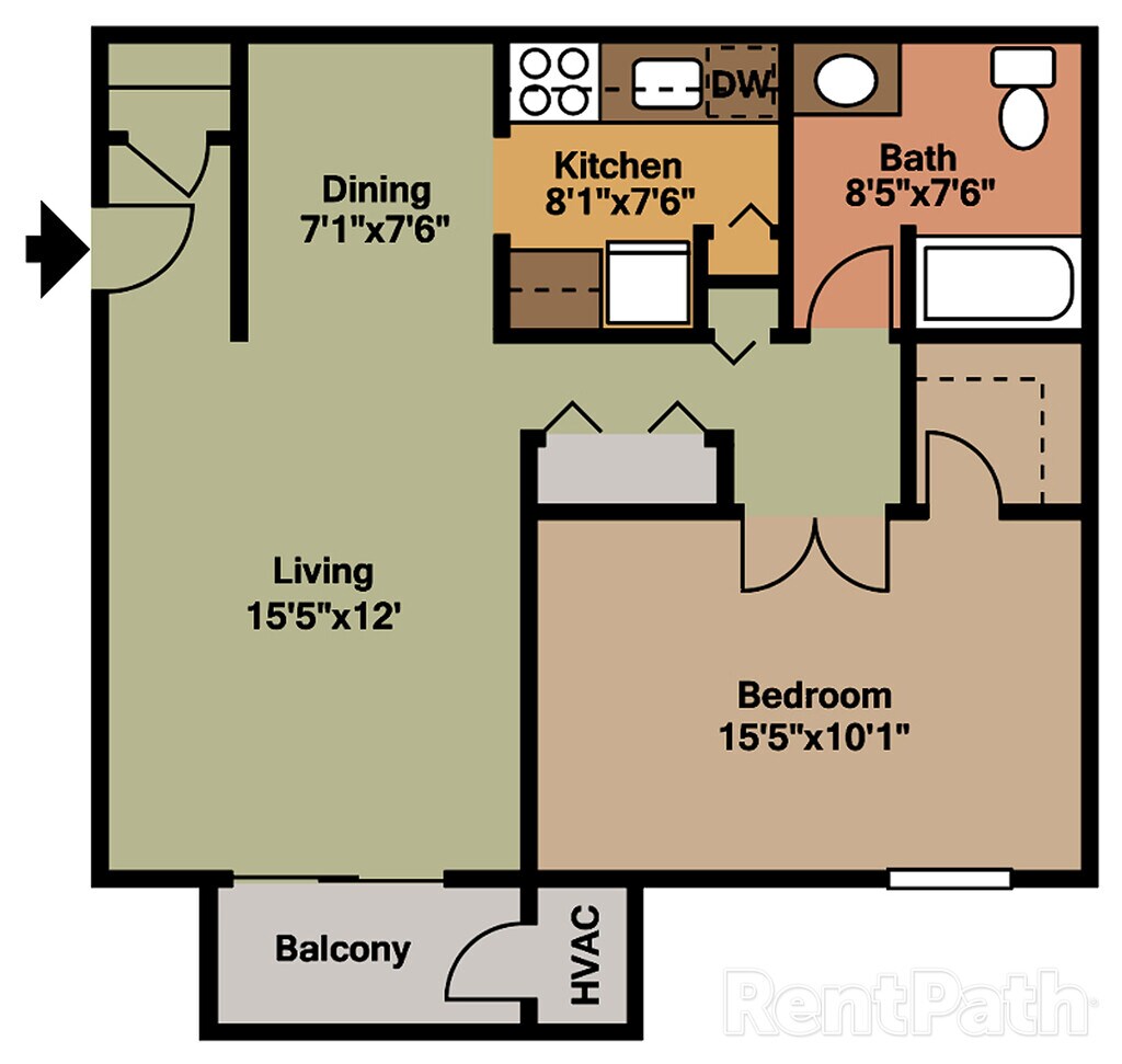 101 - 1 Bdrm, 1 Bath - Plano 1 ![]()