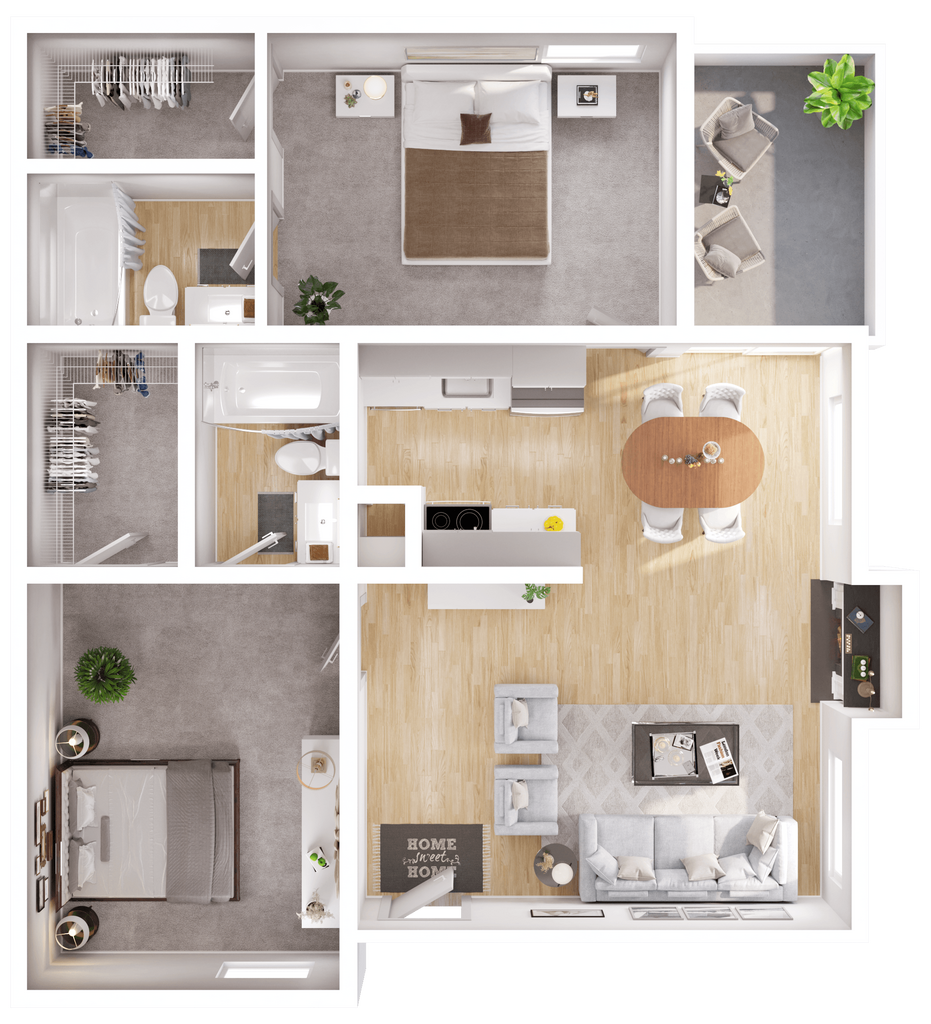1 Dormitorio, 1 Baño, 745 pies²Disponible AhoraGalería del Modelo