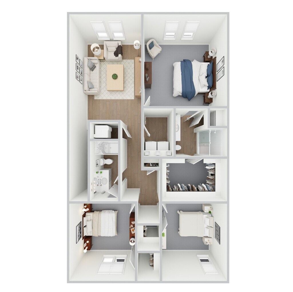 Modelo de apartamento: ElmDesde $1,7493 Dormitorios, 2 Baños, 1401 sq ftDisponible AhoraPlanosFotos![]()