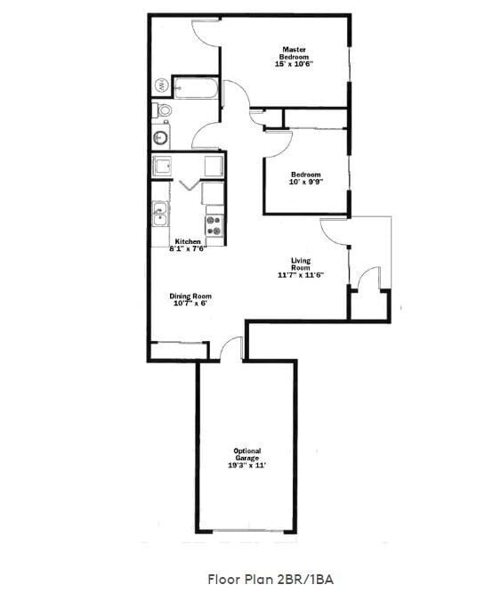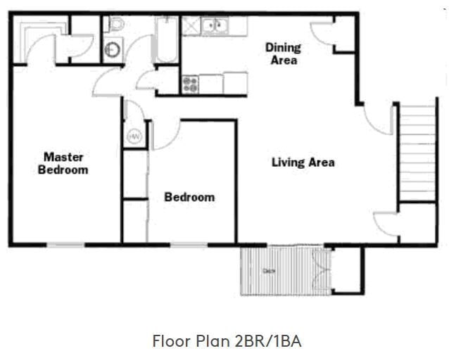 2 Dormitorios, 1 Baño, 1100 pies²El más grandeEsta opción tiene las unidades más grandes para este modeloGalería del Modelo
