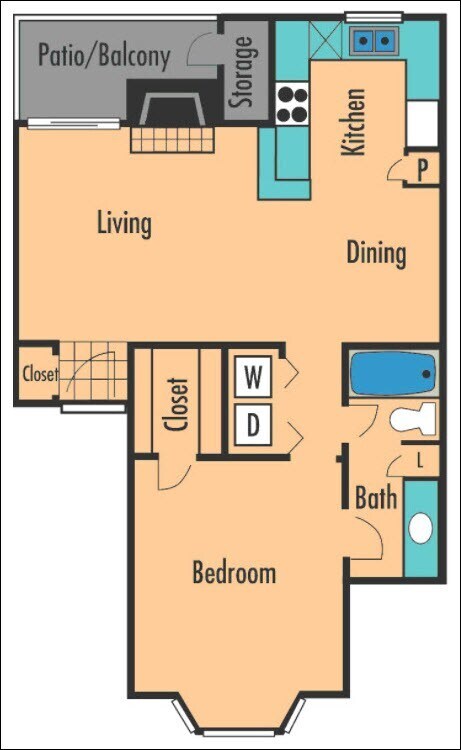 Modelo de apartamento: A1-D1 Dormitorio, 1 Baño, 651 sq ftDisponible AhoraPlanosFotos![]()
