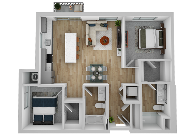 Modelo de apartamento: B2Desde $1,5101 Dormitorio, 1 Baño, 725 sq ftDisponible Ahora![]()