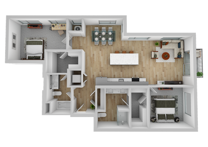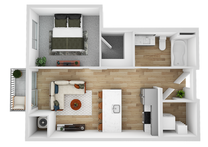 Modelo de apartamento: B1Desde $1,4651 Dormitorio, 1 Baño, 587 sq ftDisponible Ahora![]()