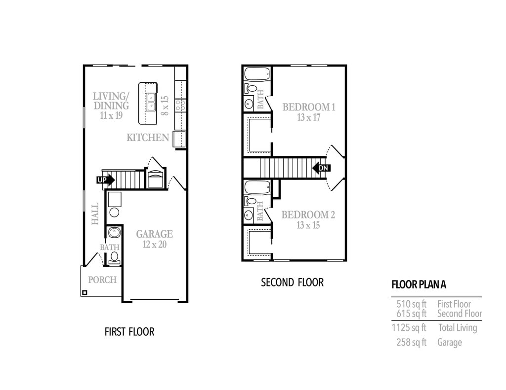Modelo de apartamento: Townhome A2 Dormitorios, 2.5 Baños, 1125 sq ftNo DisponiblePlanosFotos![]()
