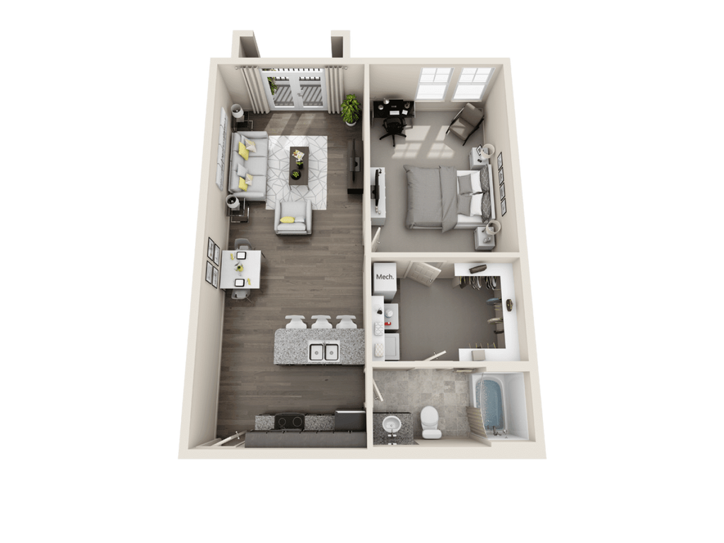 1 Dormitorio, 1 Baño, 841 pies²Disponible AhoraGalería del Modelo