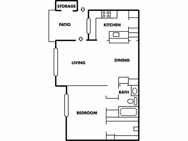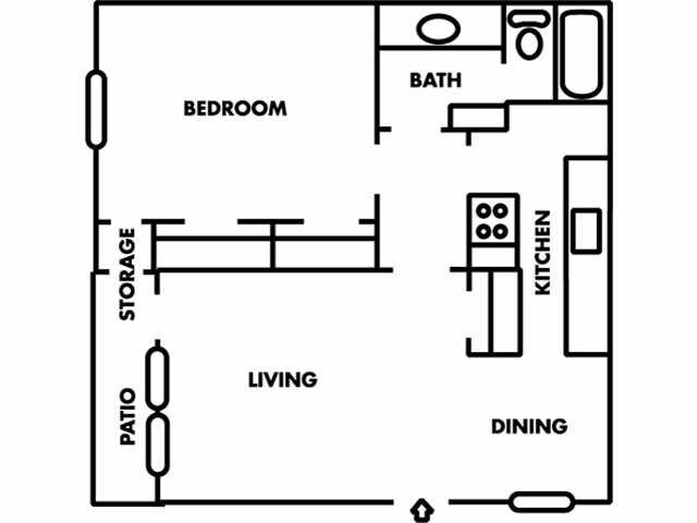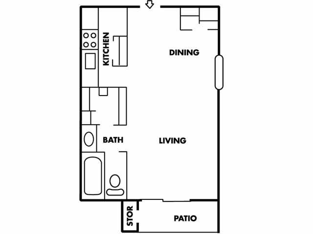 Modelo de apartamento: E1Estudio, 1 Baño, 488-490 sq ftNo Disponible![]()
