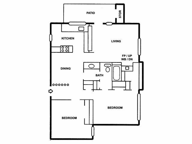 Modelo de apartamento: A4 TH1 Dormitorio, 1.5 Baños, 926 sq ftNo Disponible![]()