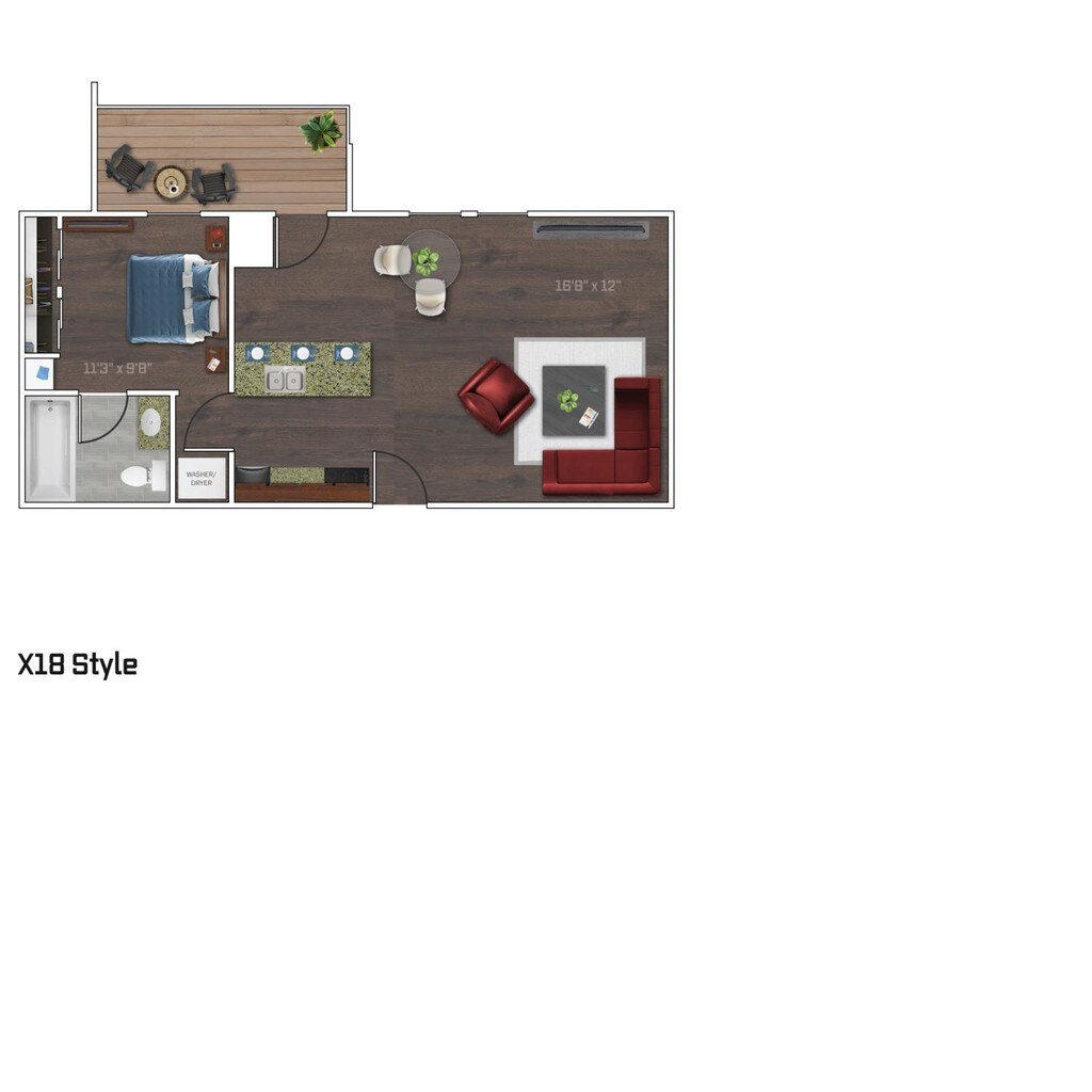 Modelo de apartamento: X08Desde $1,7001 Dormitorio, 1 Baño, 740 sq ftNo DisponibleX08 - Imagen 1 Plano: X07
