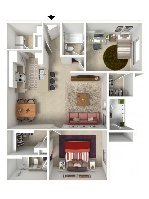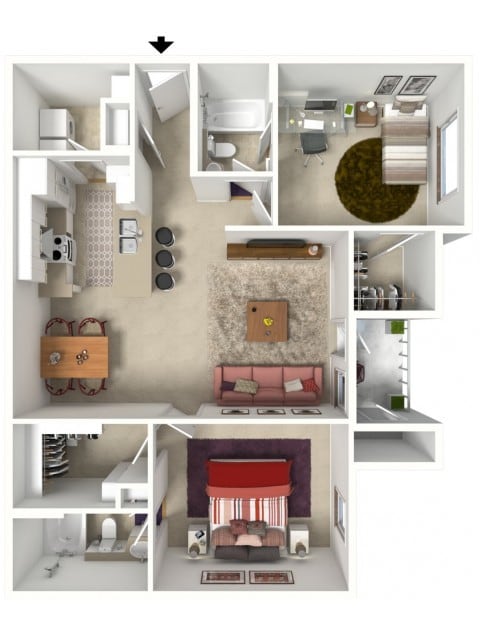 Modelo de apartamento: Spruce1 Dormitorio, 1 Baño, 797 sq ftDisponible December 3, 2025![]()