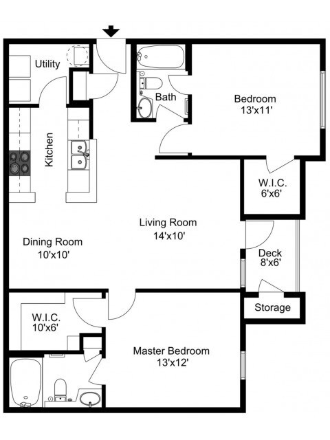 Modelo de apartamento: Scotch1 Dormitorio, 1 Baño, 642 sq ftNo Disponible![]()