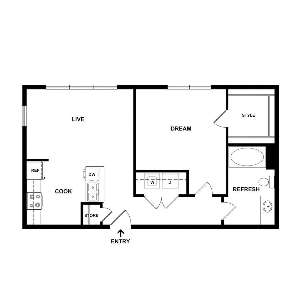 1 Dormitorio, 1 Baño, 704 pies²Disponible AhoraGalería del Modelo