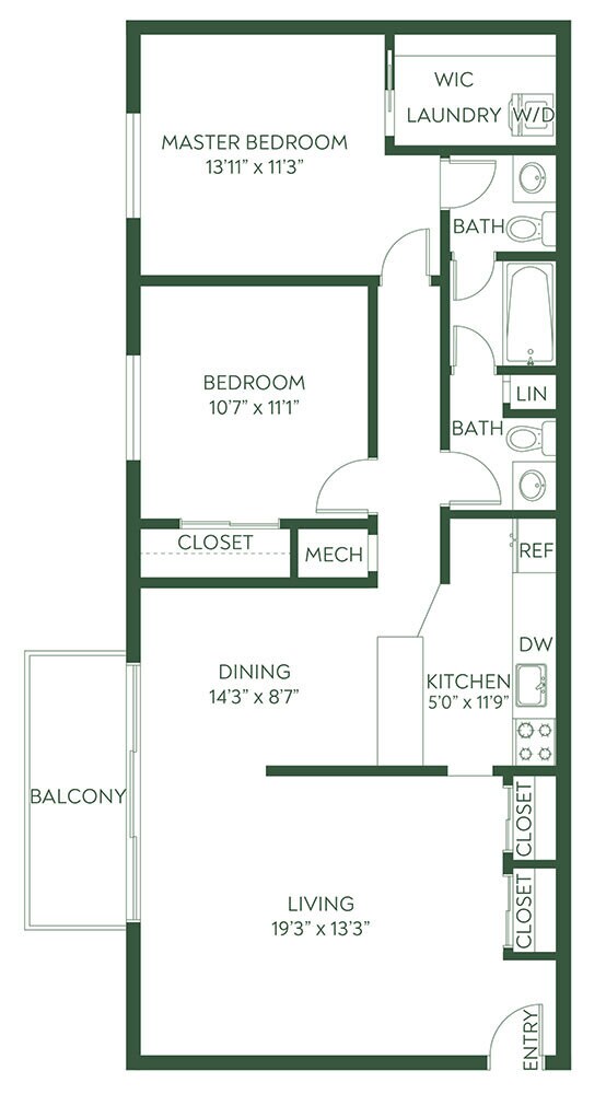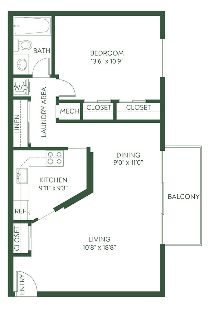1 Dormitorio, 1 Baño, 695 pies²Disponible AhoraGalería del Modelo