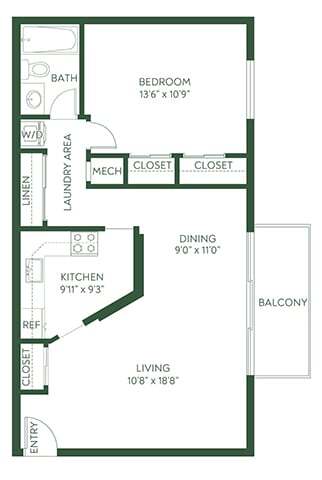 Modelo de apartamento: A1Desde $1,4721 Dormitorio, 1 Baño, 695 sq ftDisponible Ahora![]()