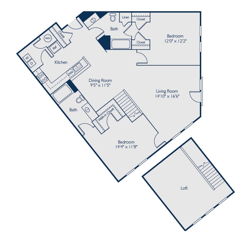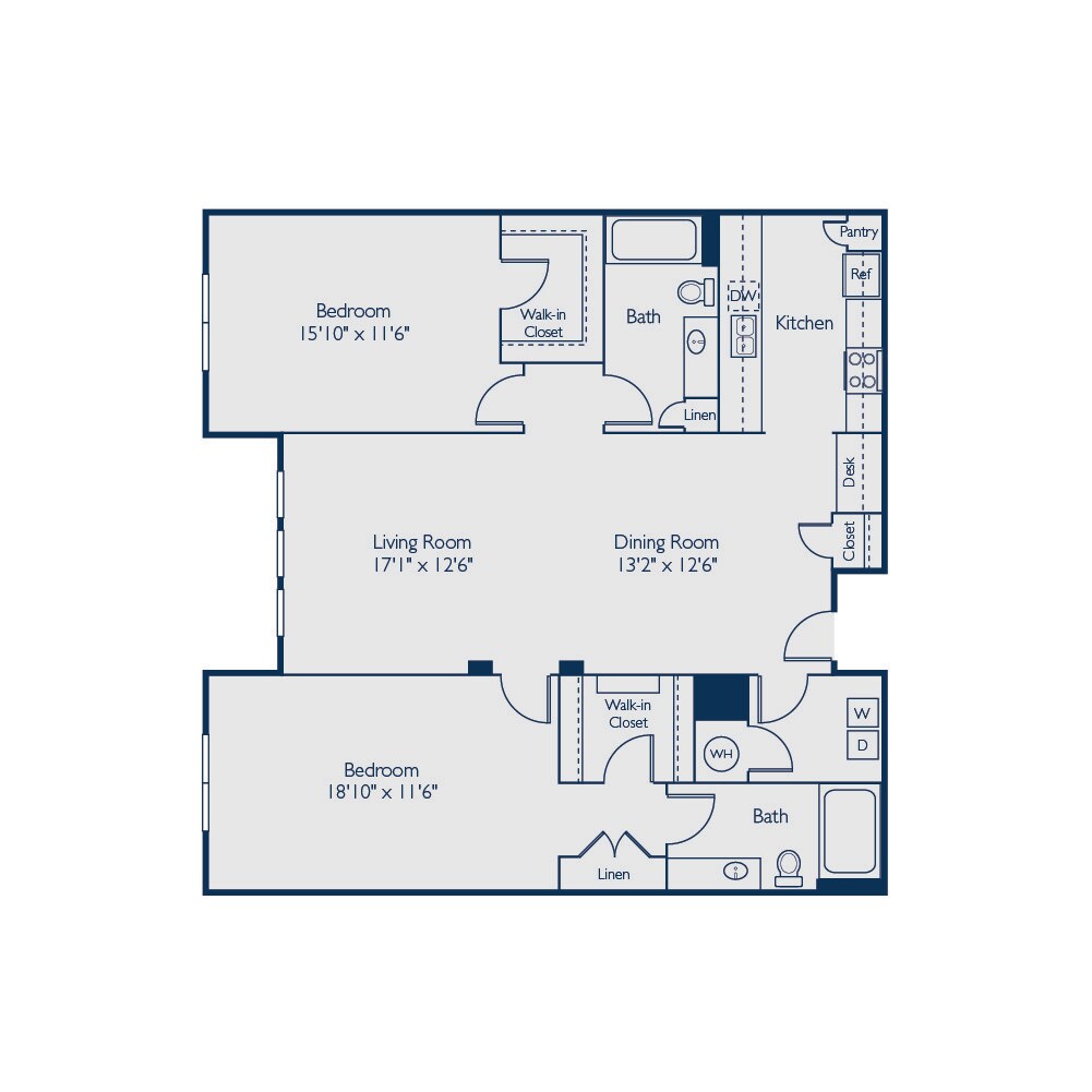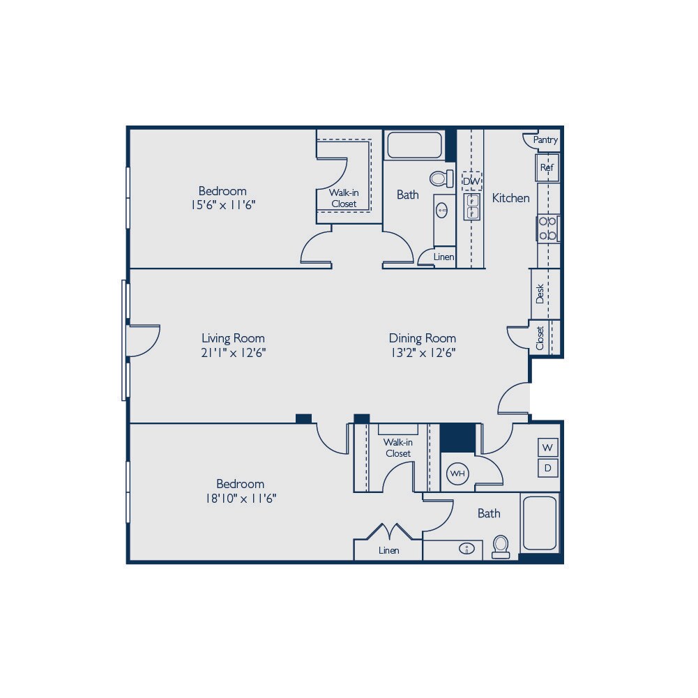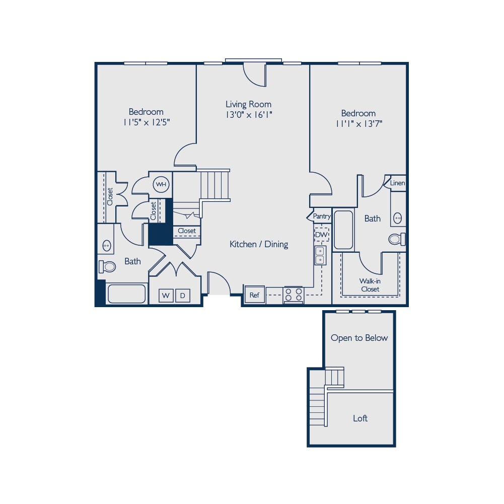Modelo de apartamento: A1DDesde $1,9701 Dormitorio, 1 Baño, 797 sq ftDisponible Ahora![]()