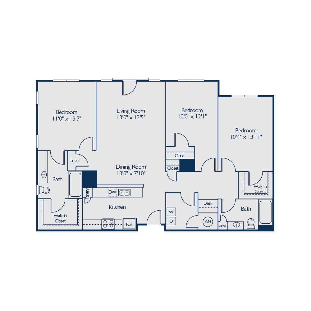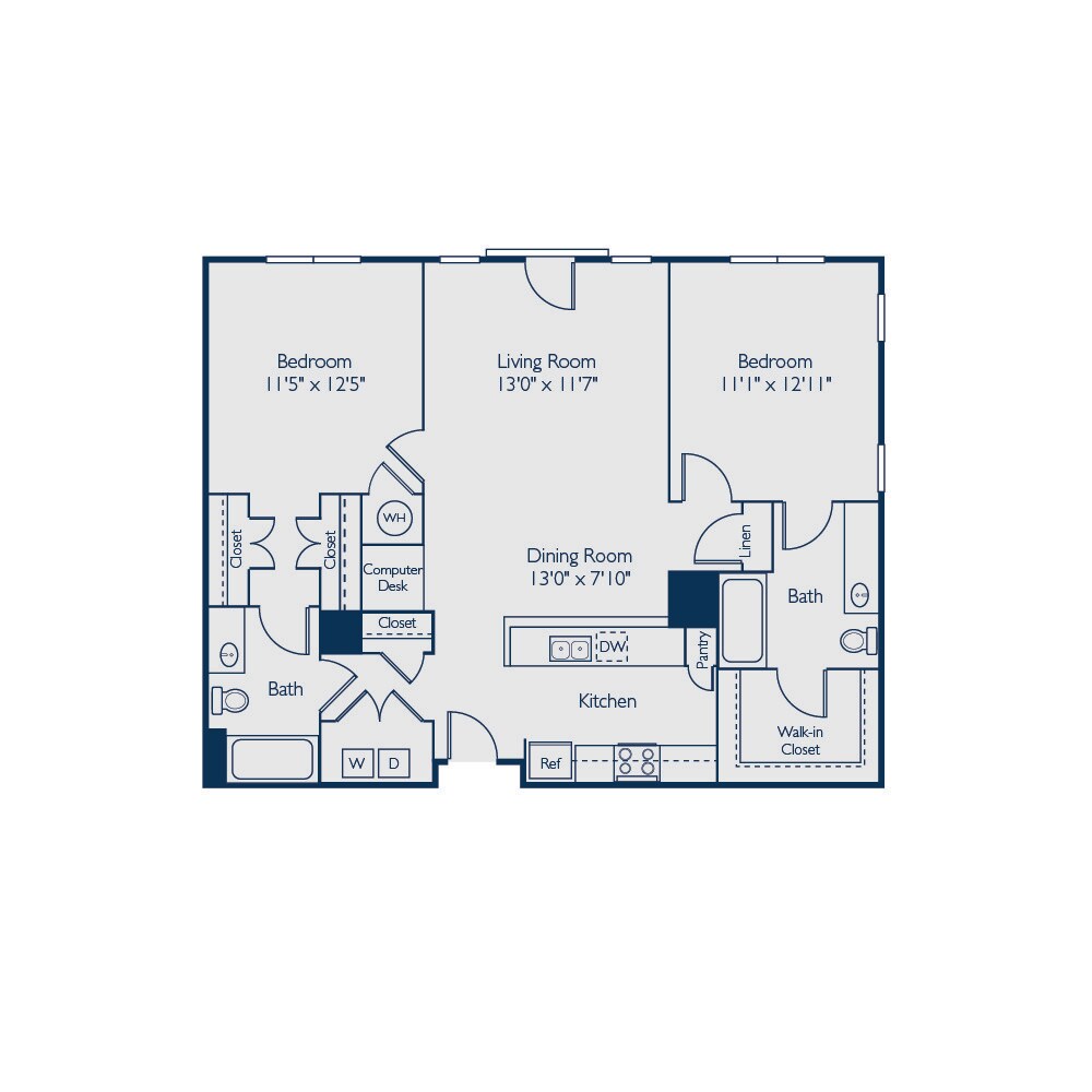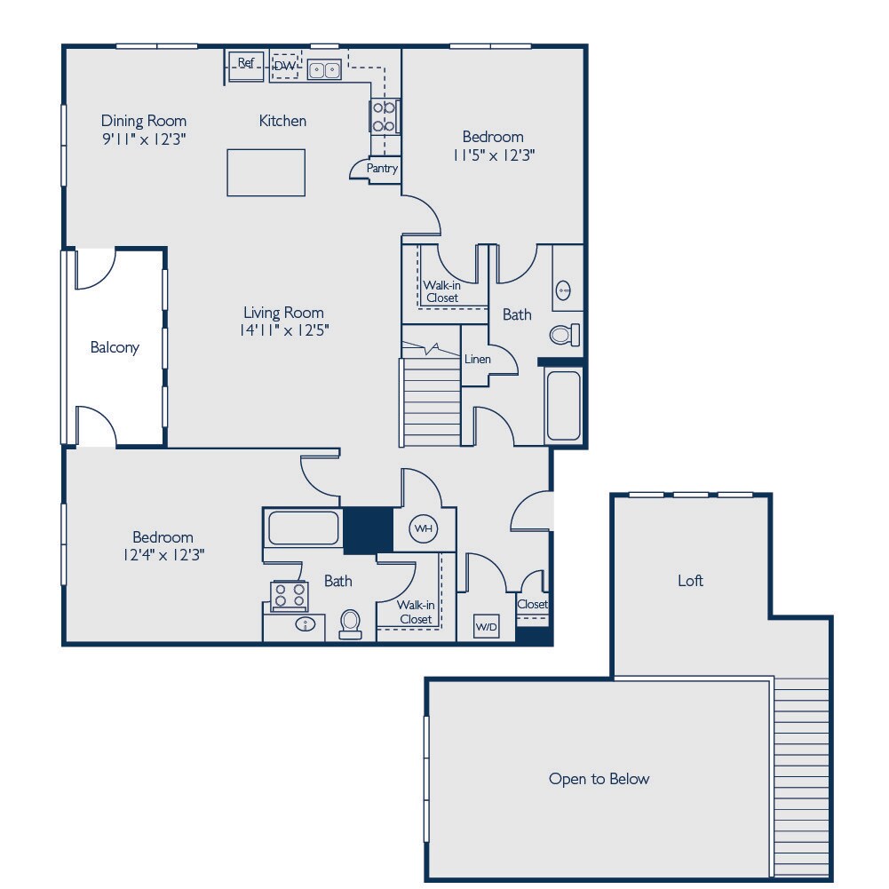 Modelo de apartamento: A1EDesde $2,0901 Dormitorio, 1 Baño, 834 sq ftDisponible Ahora![]()