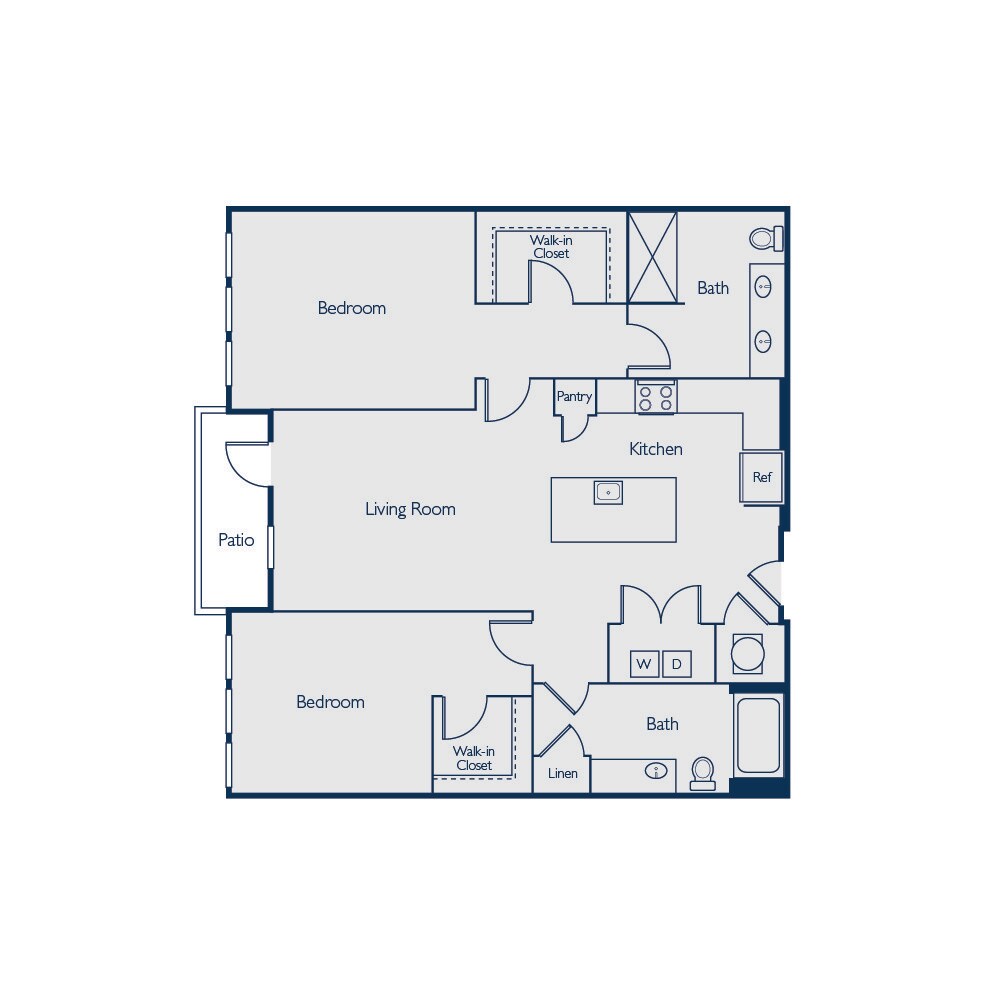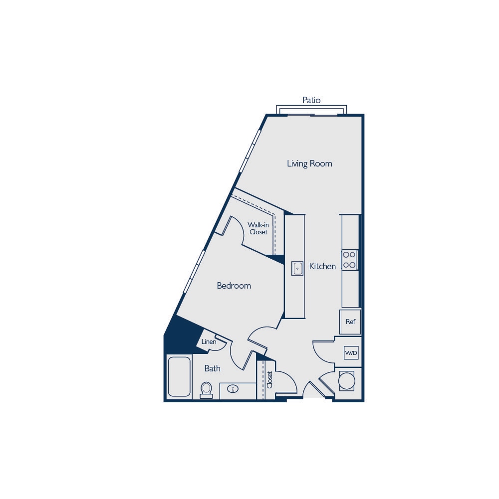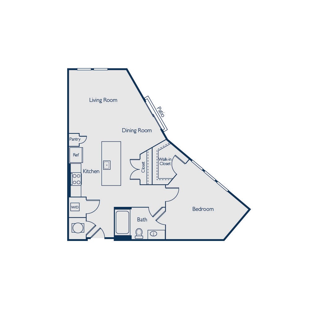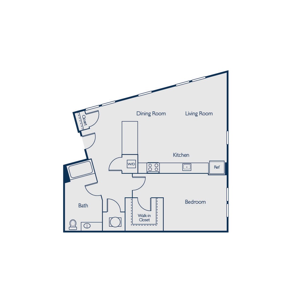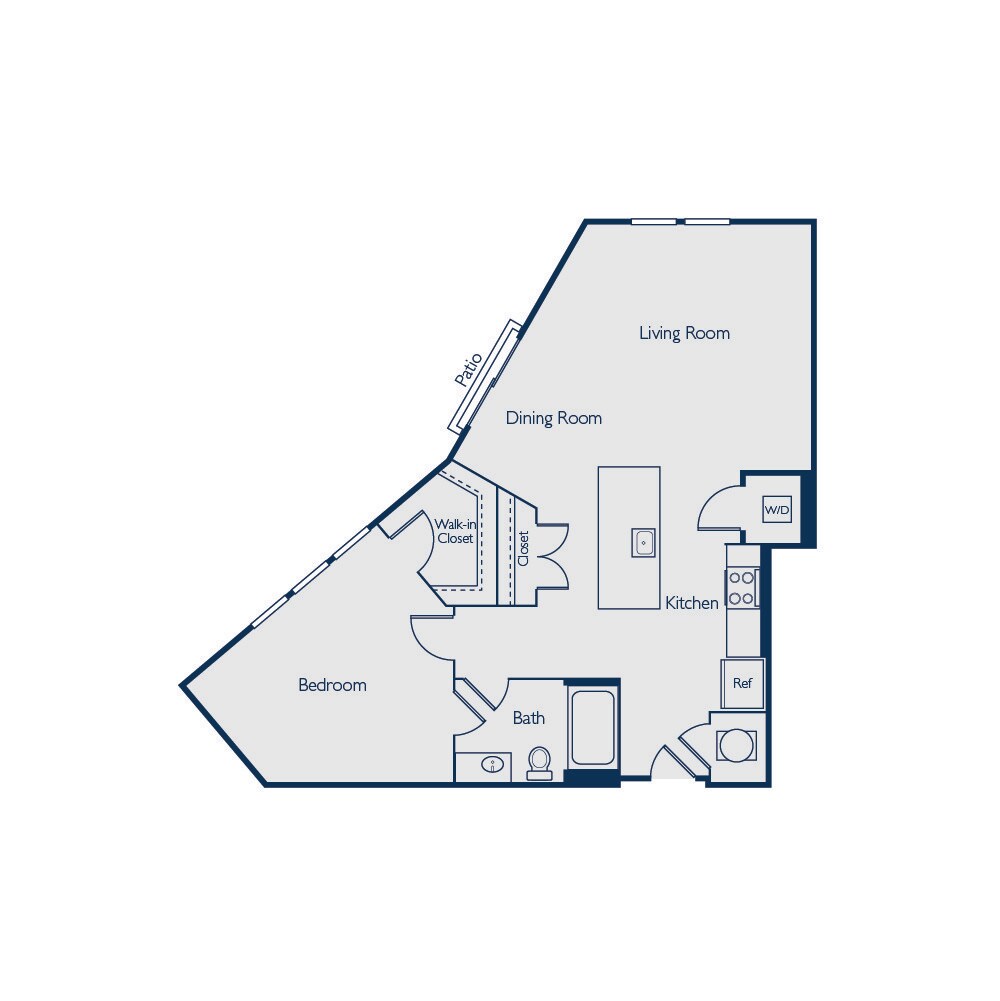 Modelo de apartamento: A1J1 Dormitorio, 1 Baño, 794 sq ftDisponible Ahora![]()