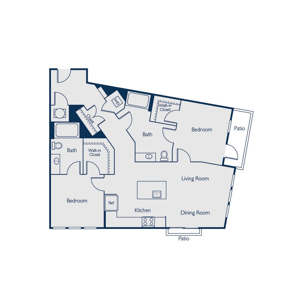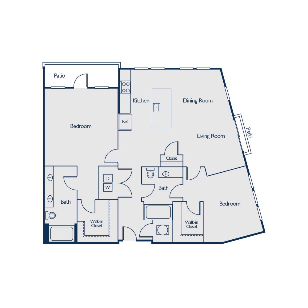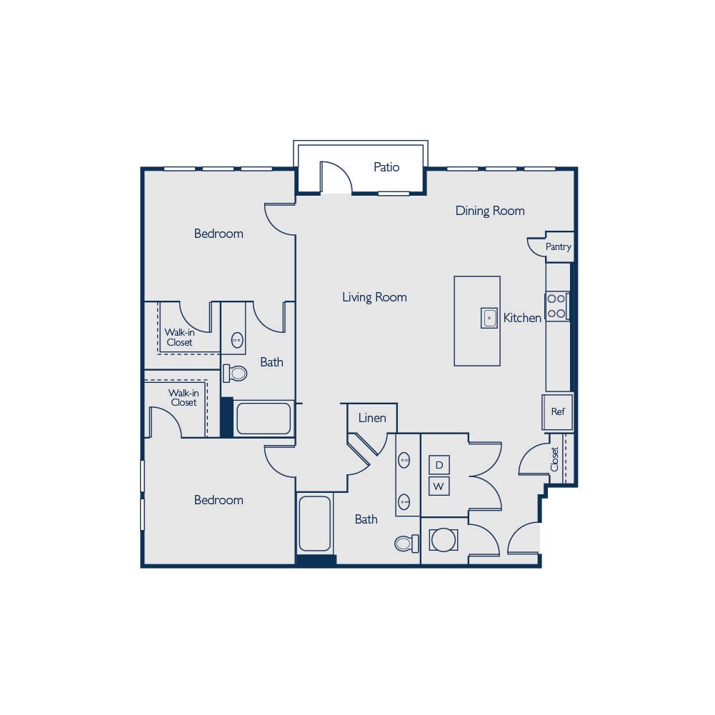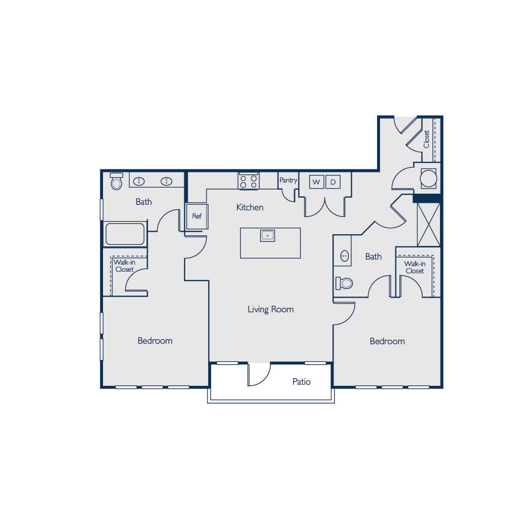 Modelo de apartamento: A1J1 Dormitorio, 1 Baño, 794 sq ftDisponible Ahora![]()