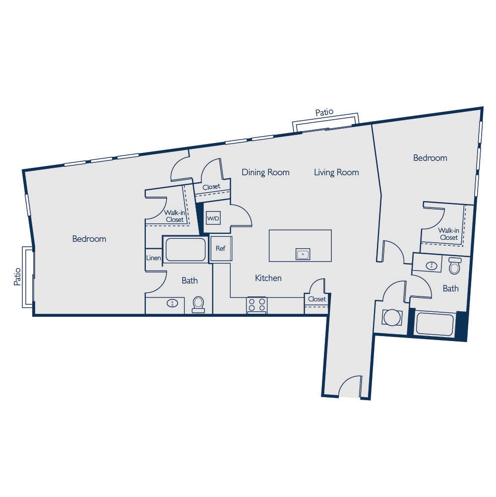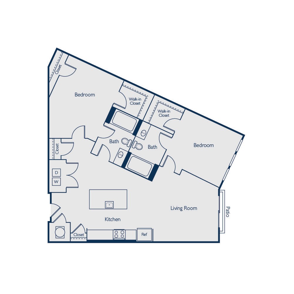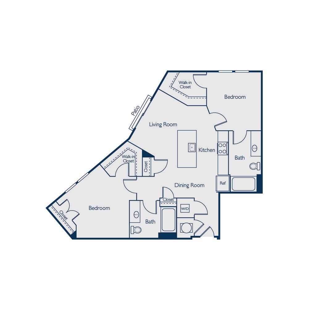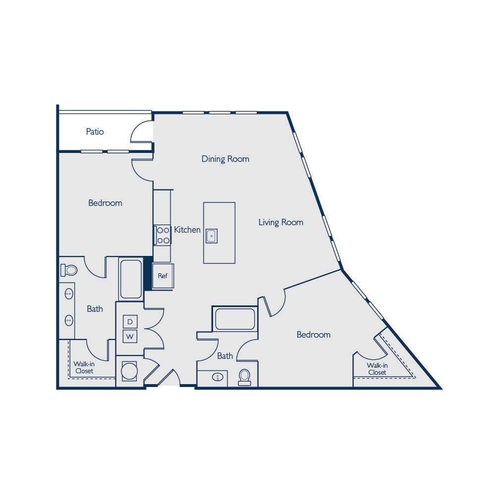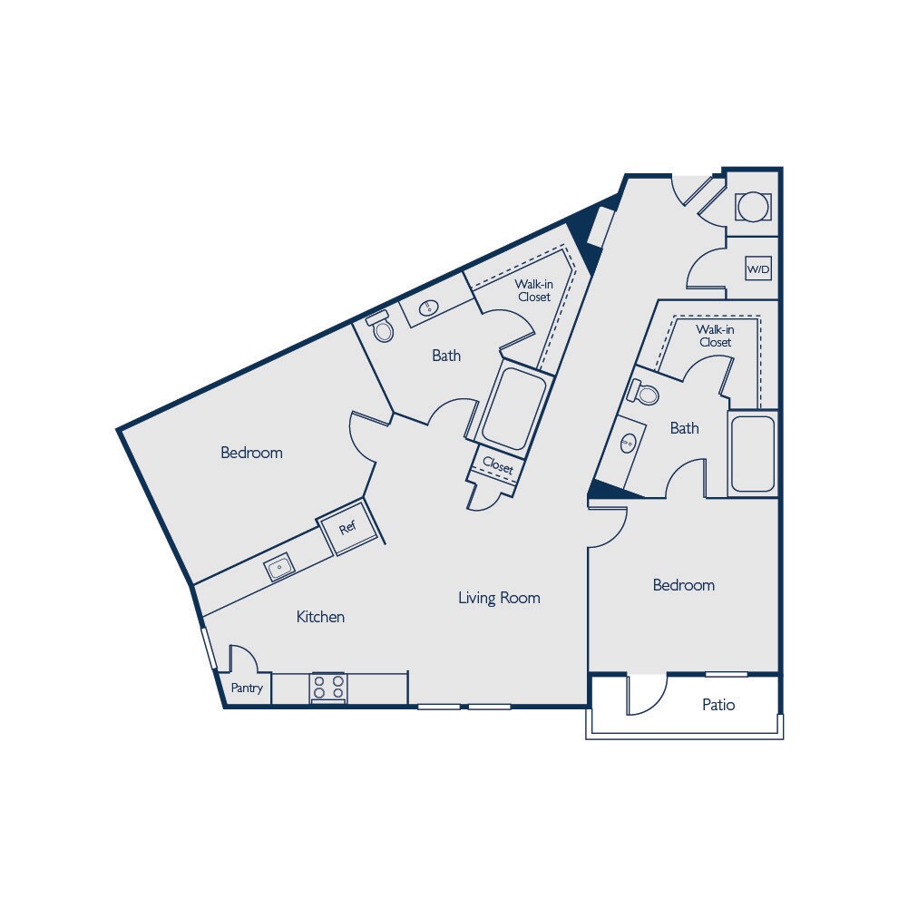 Modelo de apartamento: A1J1 Dormitorio, 1 Baño, 794 sq ftDisponible Ahora![]()