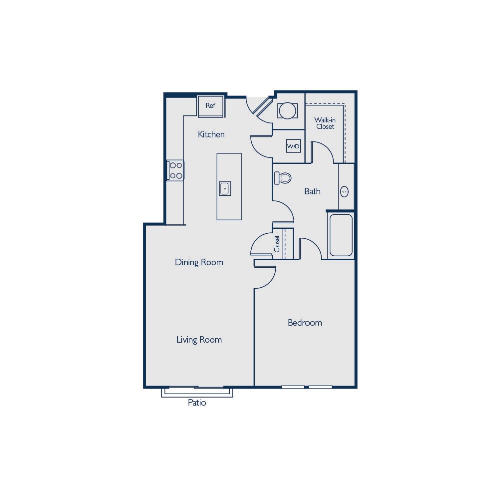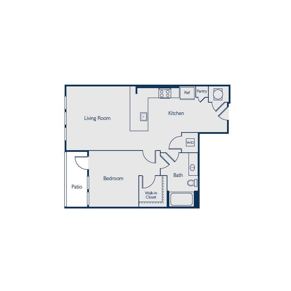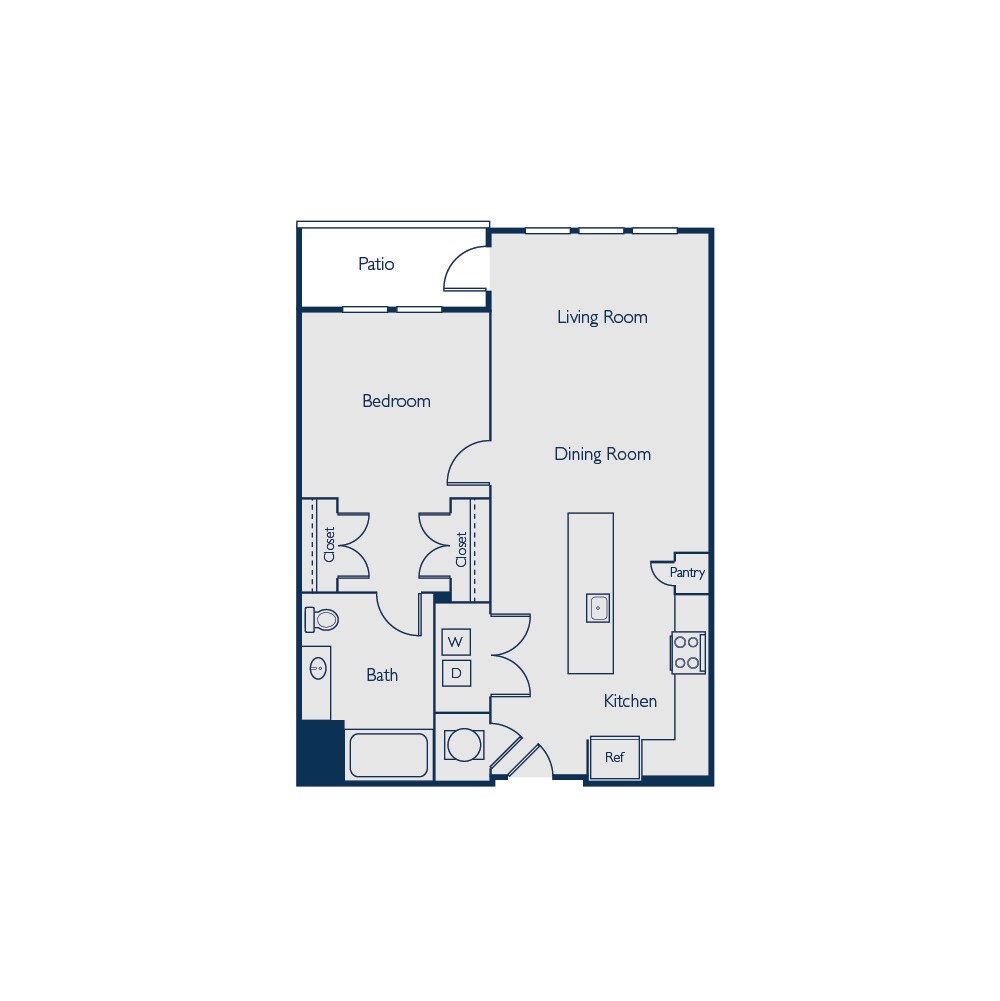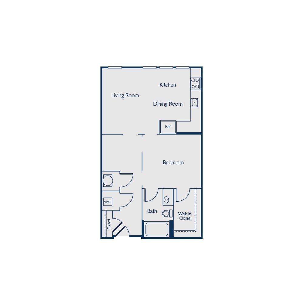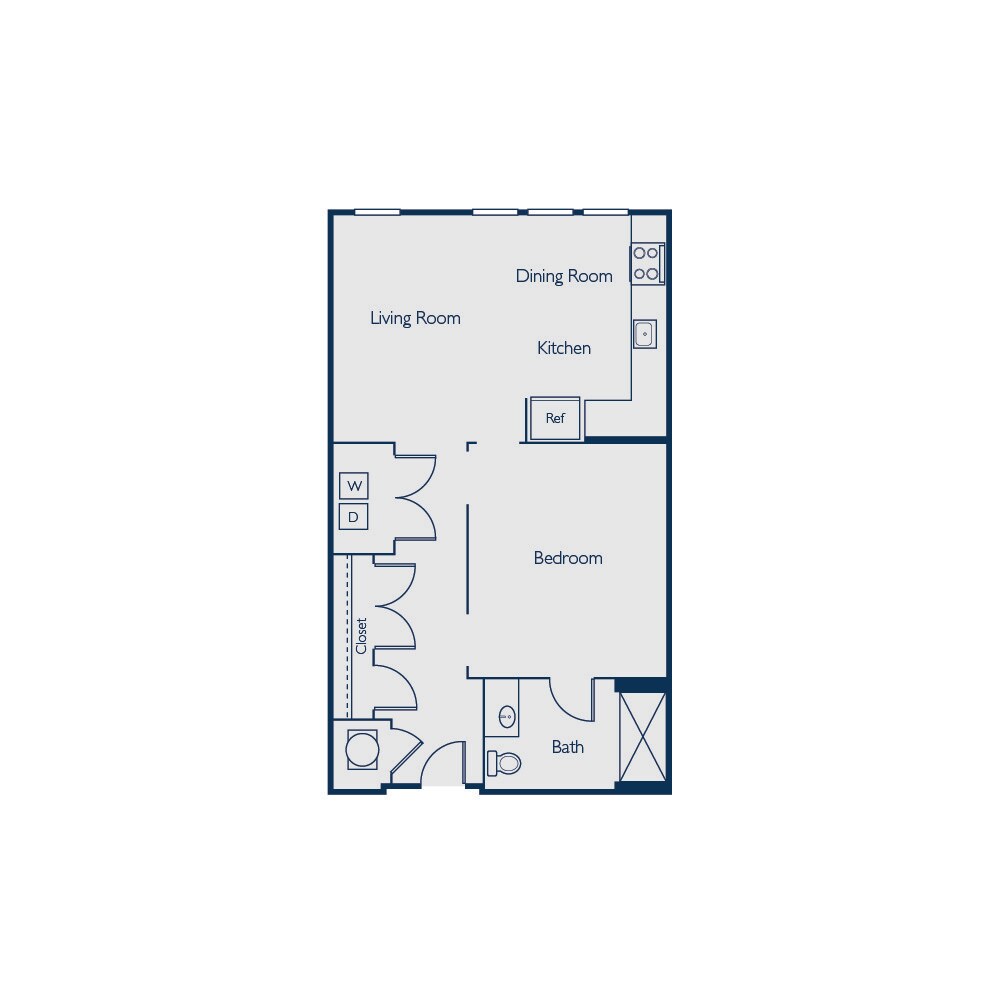 Modelo de apartamento: A1E1 Dormitorio, 1 Baño, 752 sq ftDisponible Ahora![]()