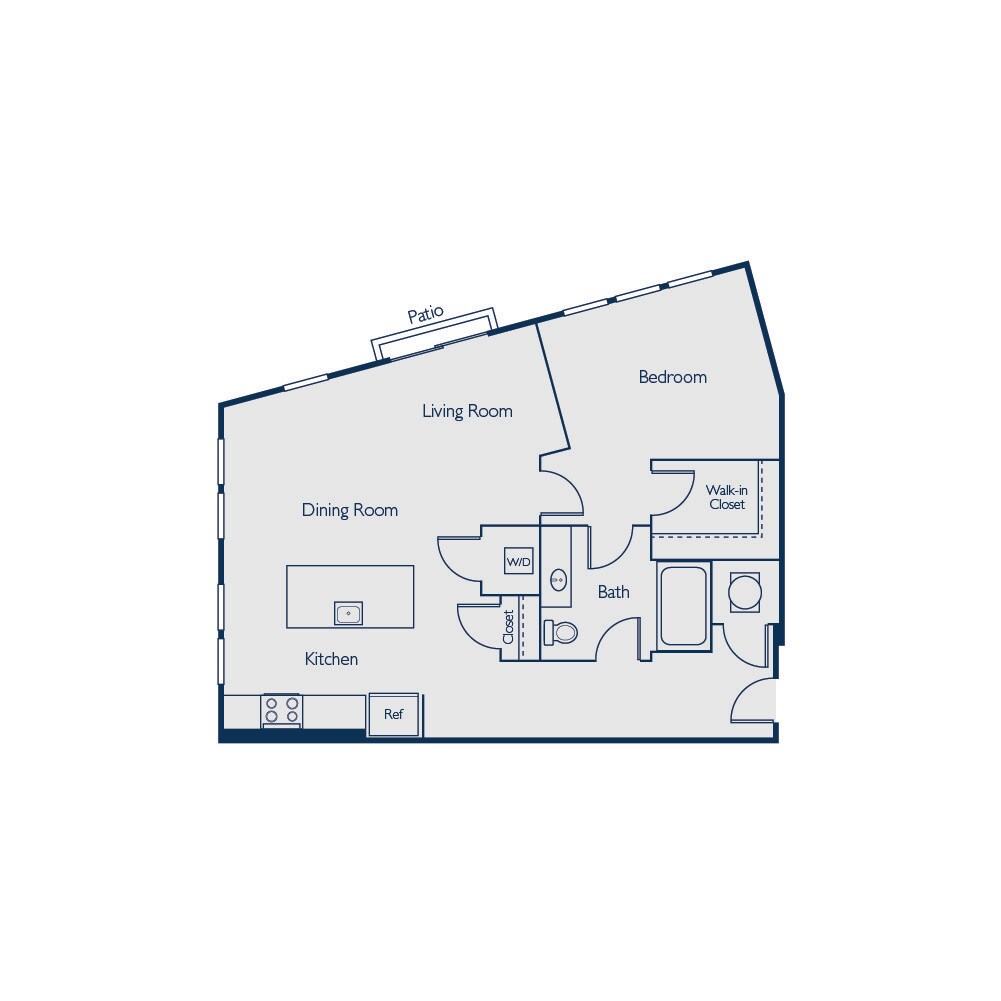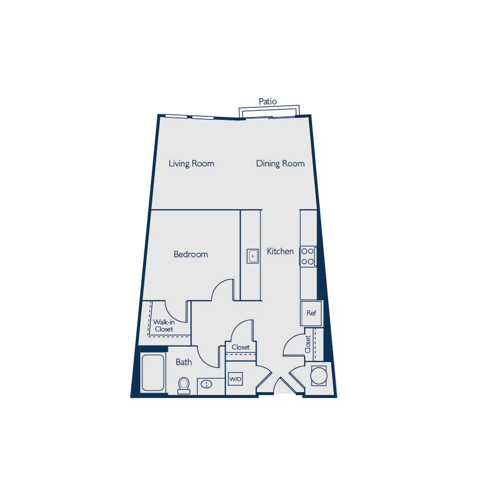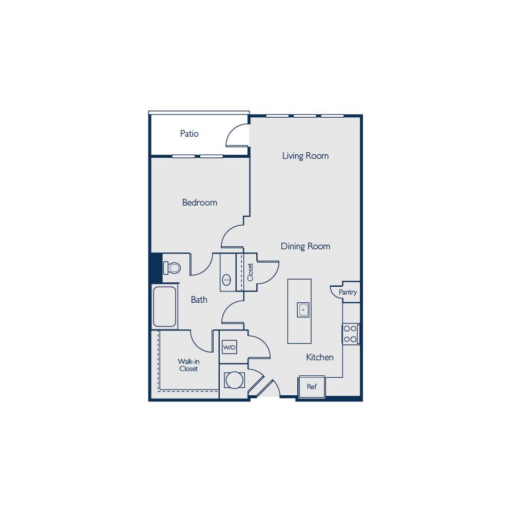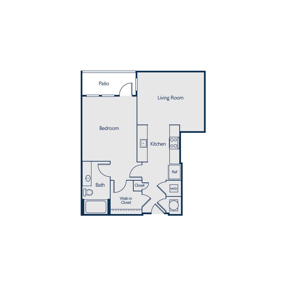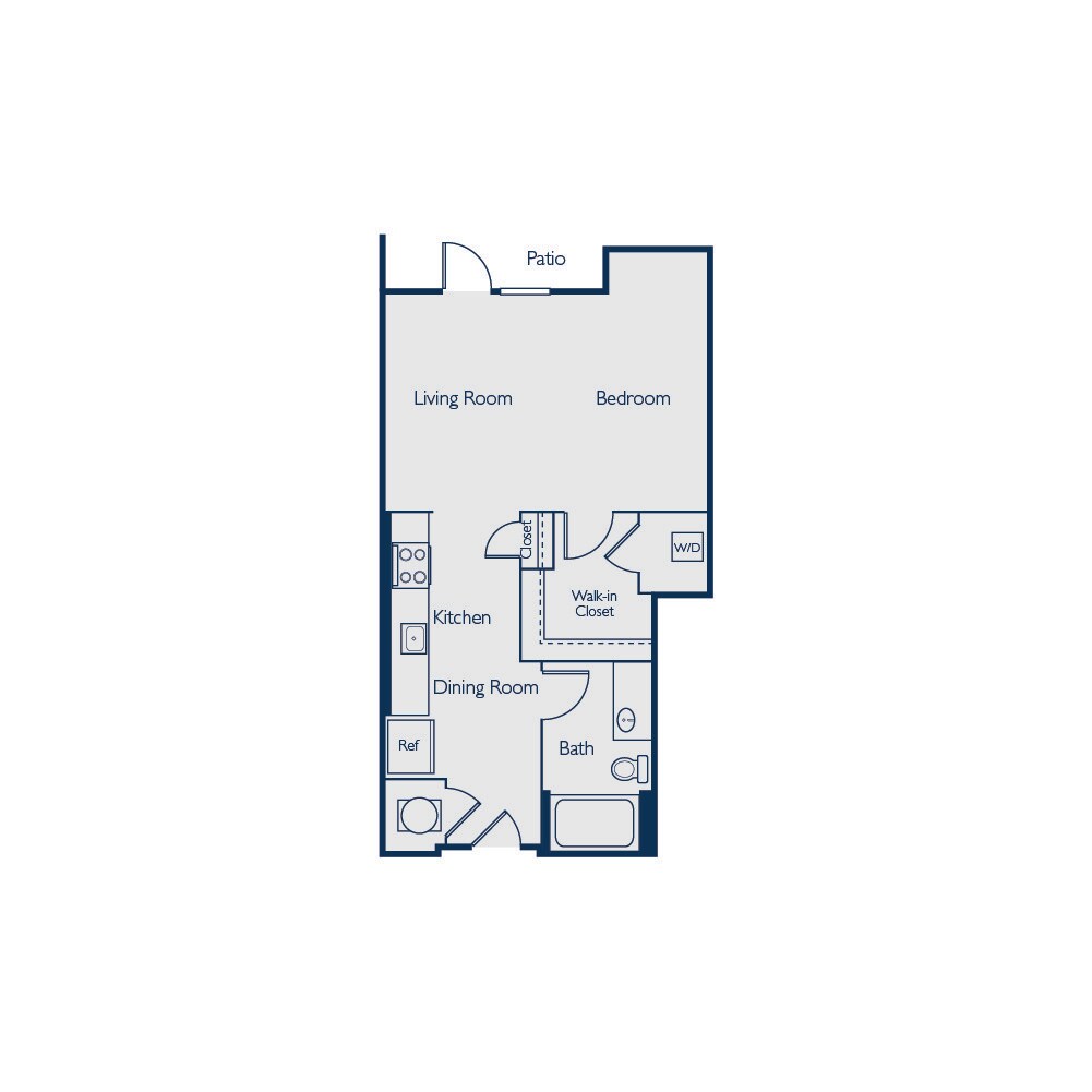 Modelo de apartamento: A1E1 Dormitorio, 1 Baño, 752 sq ftDisponible Ahora![]()