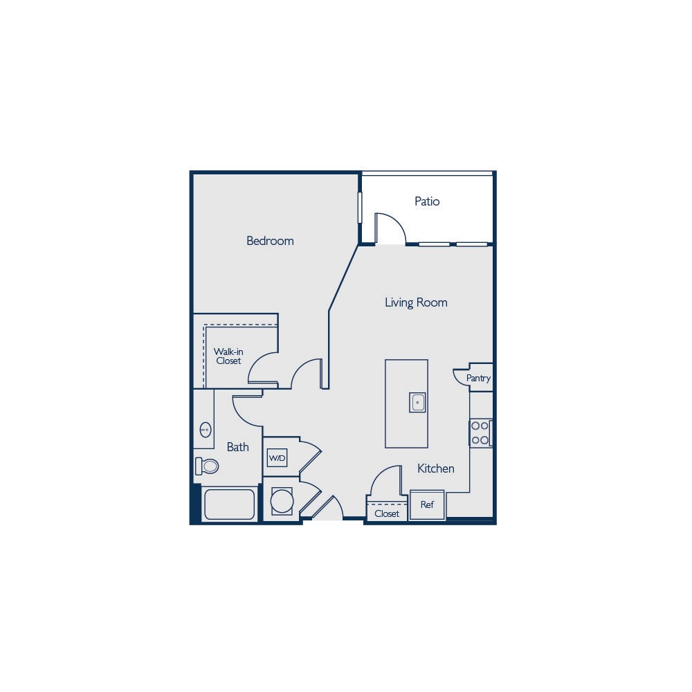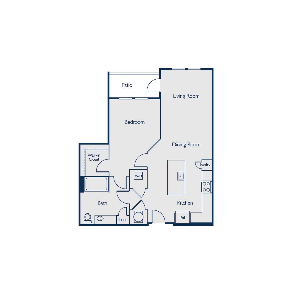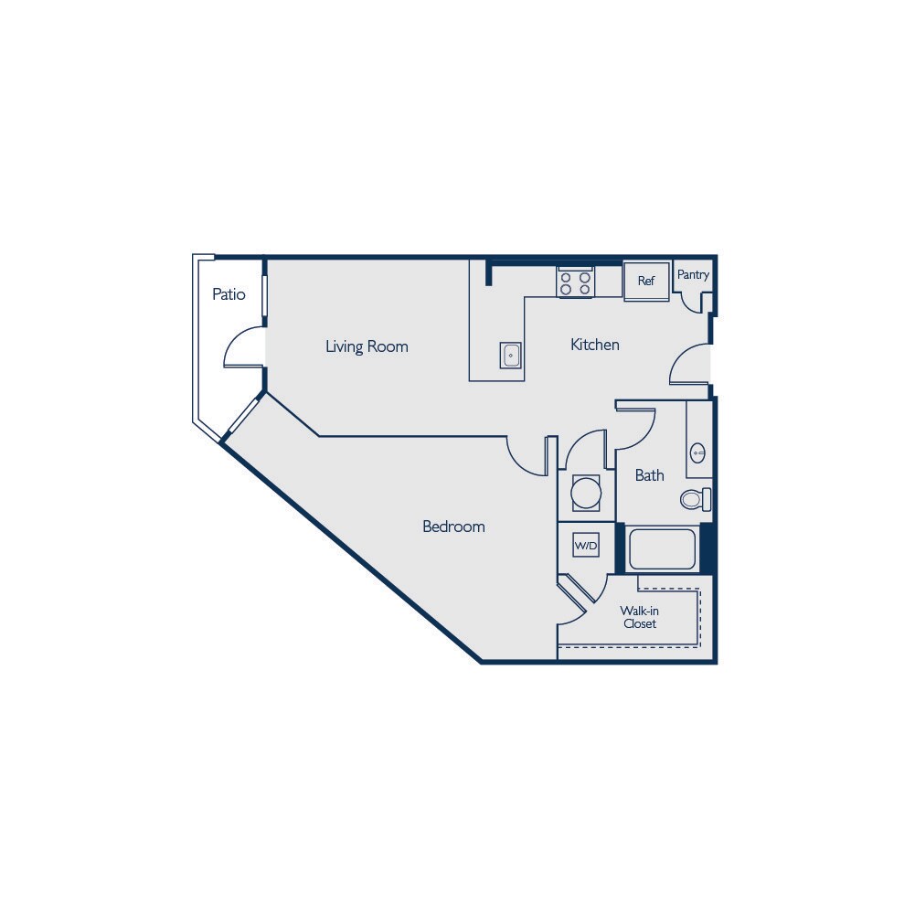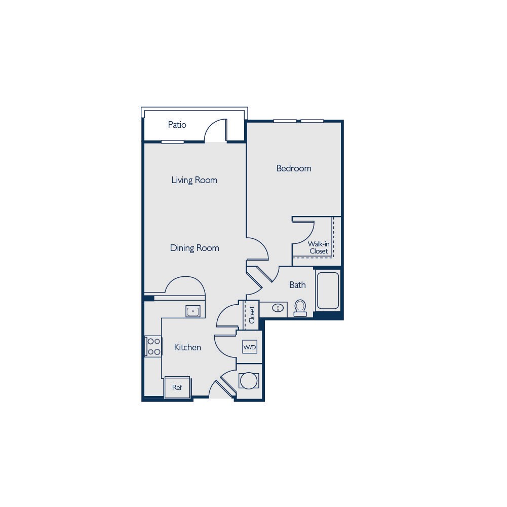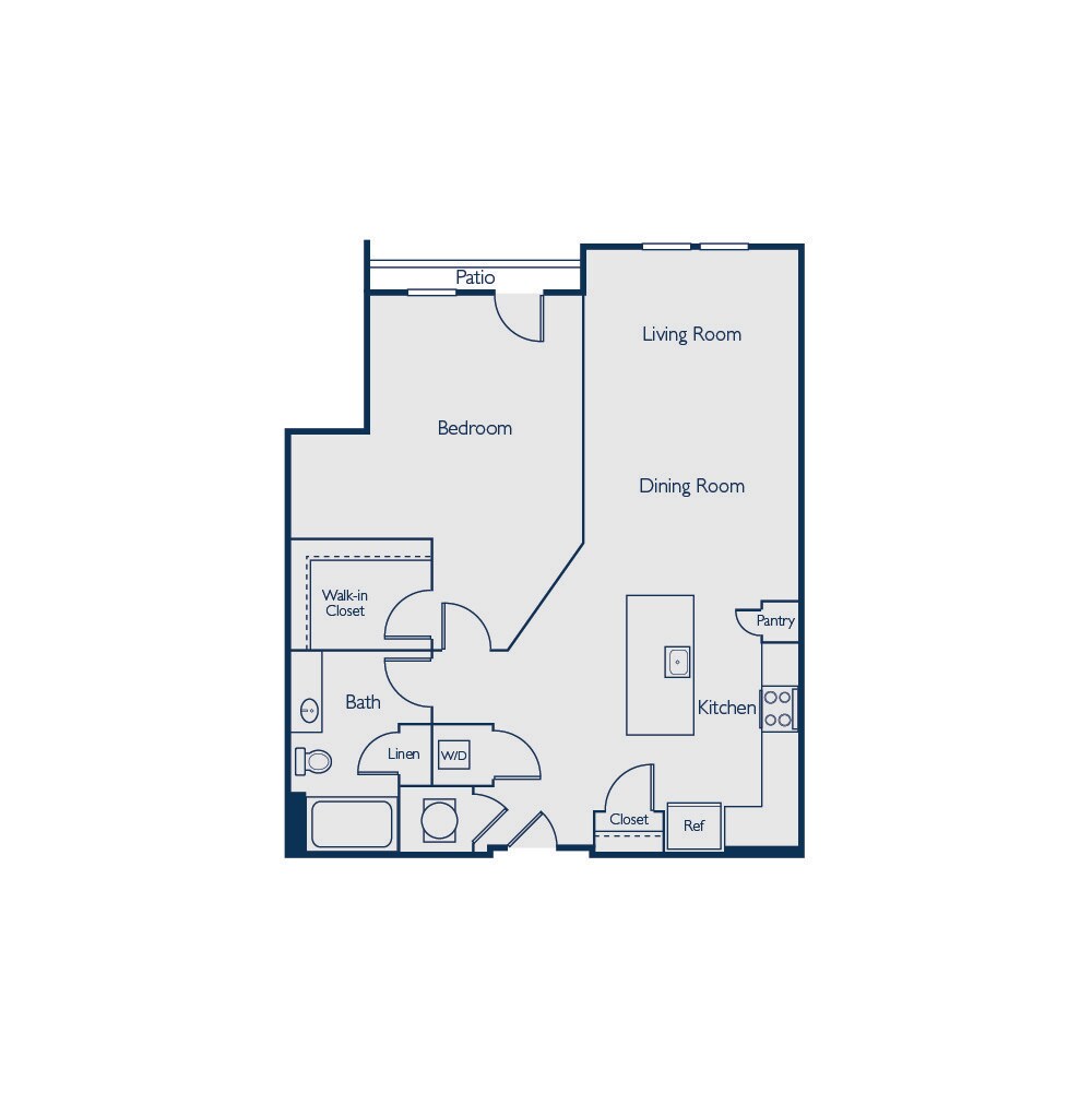 Modelo de apartamento: A1L1 Dormitorio, 1 Baño, 807 sq ftDisponible Ahora![]()