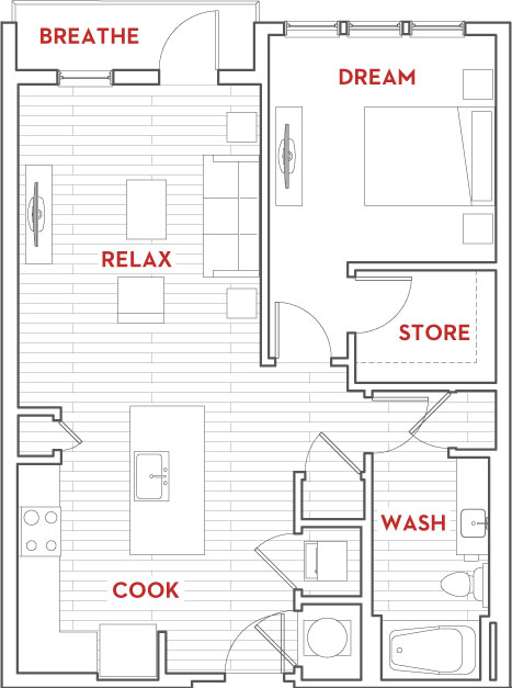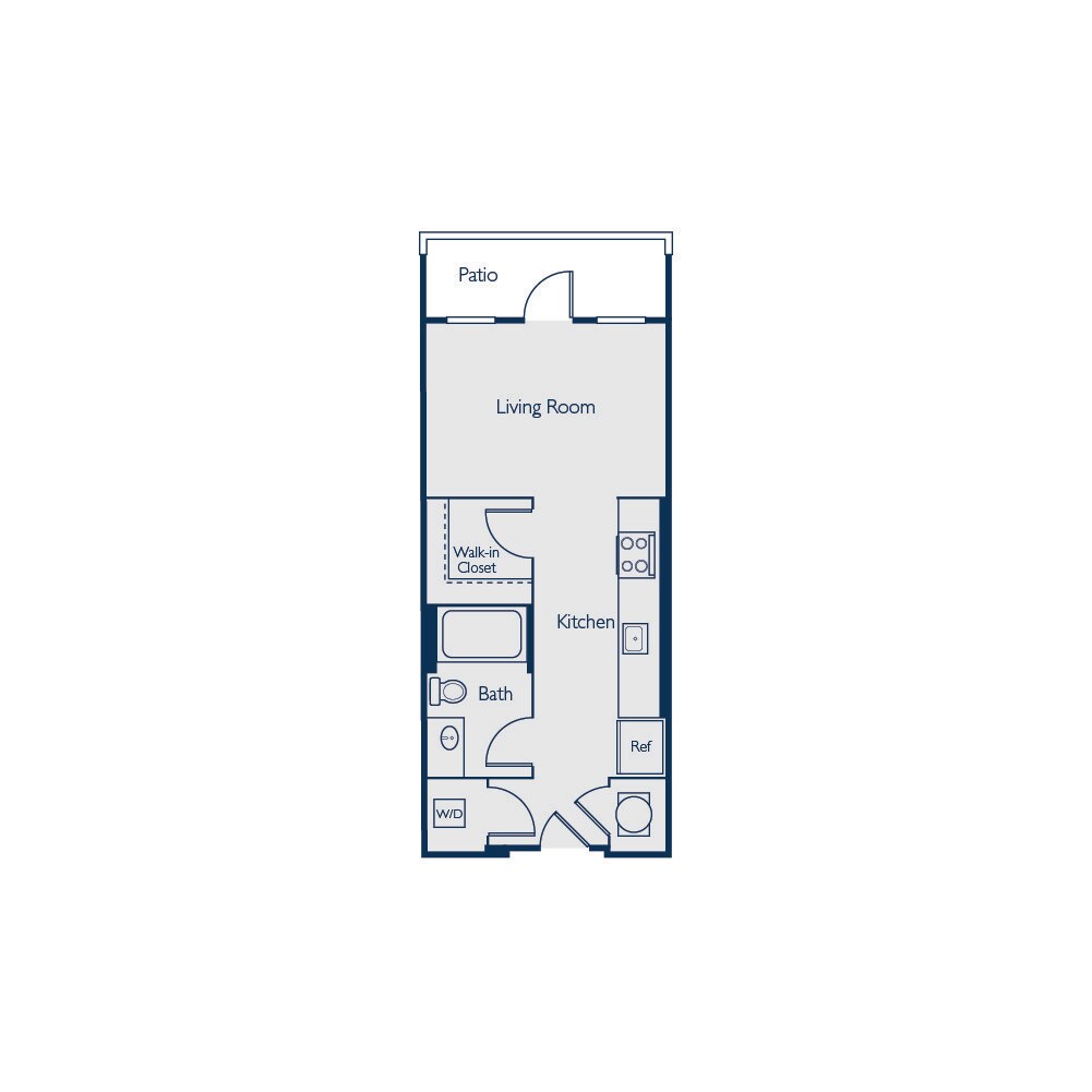 Estudio, 1 Baño, 740 pies²El más grandeEsta opción tiene las unidades más grandes para este modeloGalería del Modelo