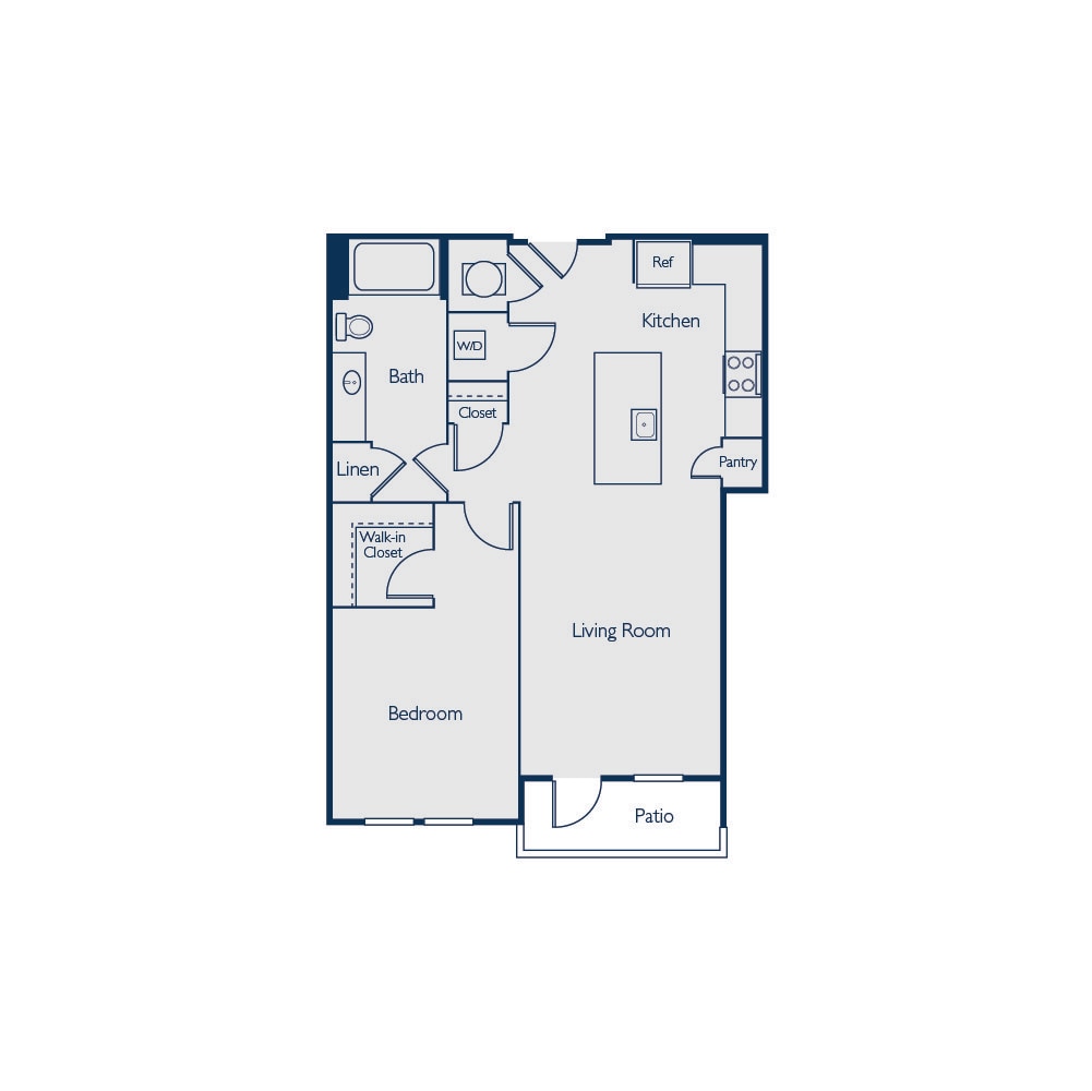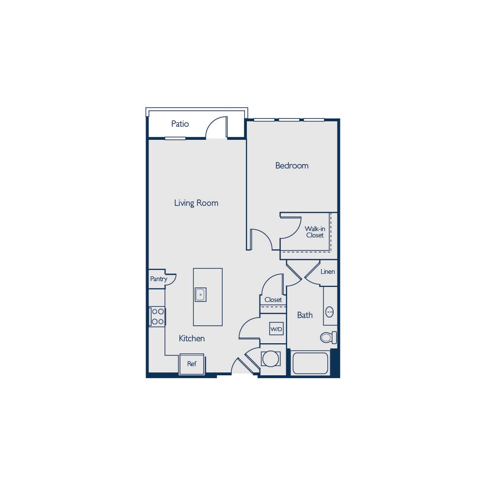 Modelo de apartamento: A1G1 Dormitorio, 1 Baño, 785 sq ftDisponible Ahora![]()