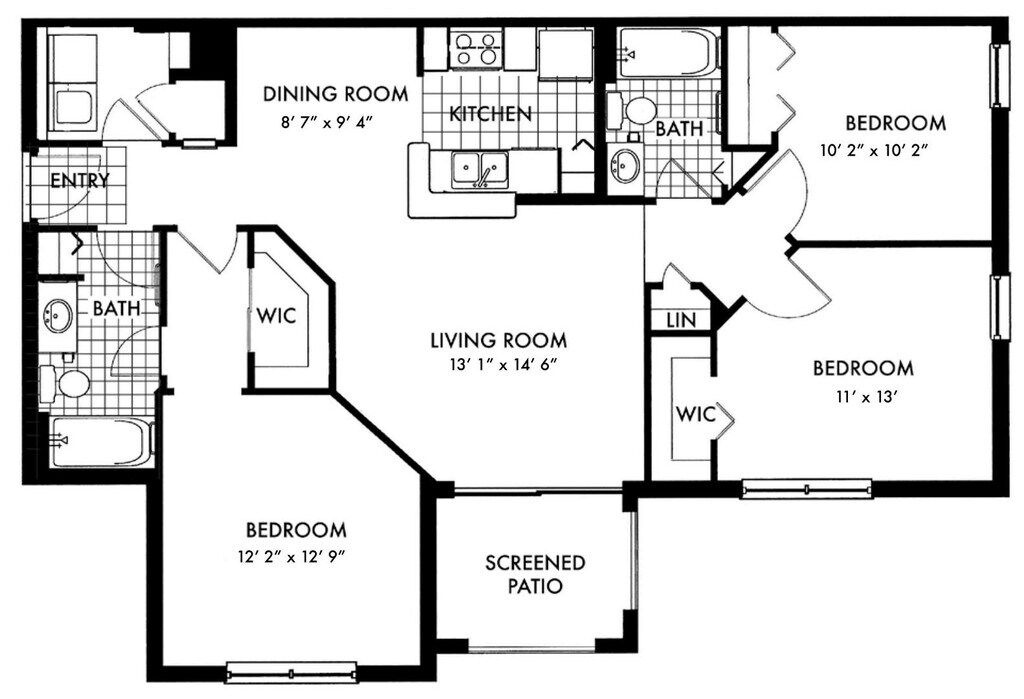 Modelo de apartamento: Hampton A1BDesde $1,6351 Dormitorio, 1 Baño, 800 sq ftDisponible Ahora![]()
