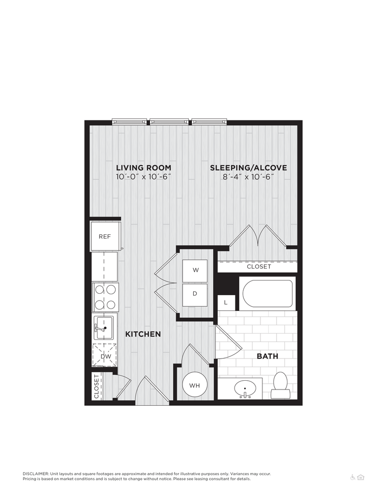 Modelo de apartamento: S1ALlame para PreciosEstudio, 1 Baño, 473 sq ftNo Disponible![]()