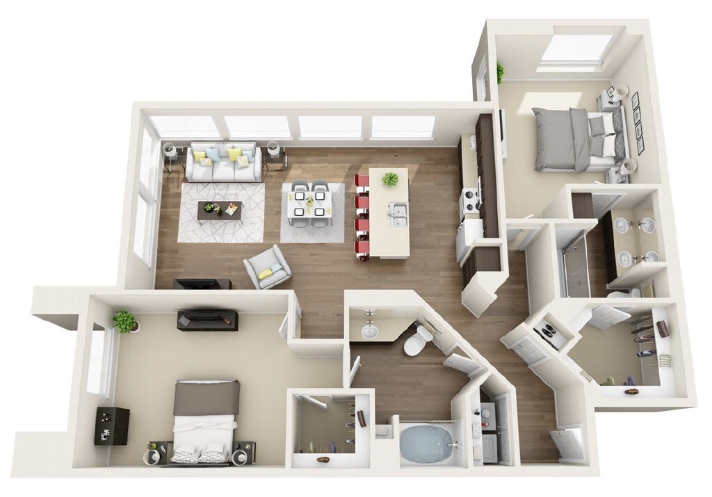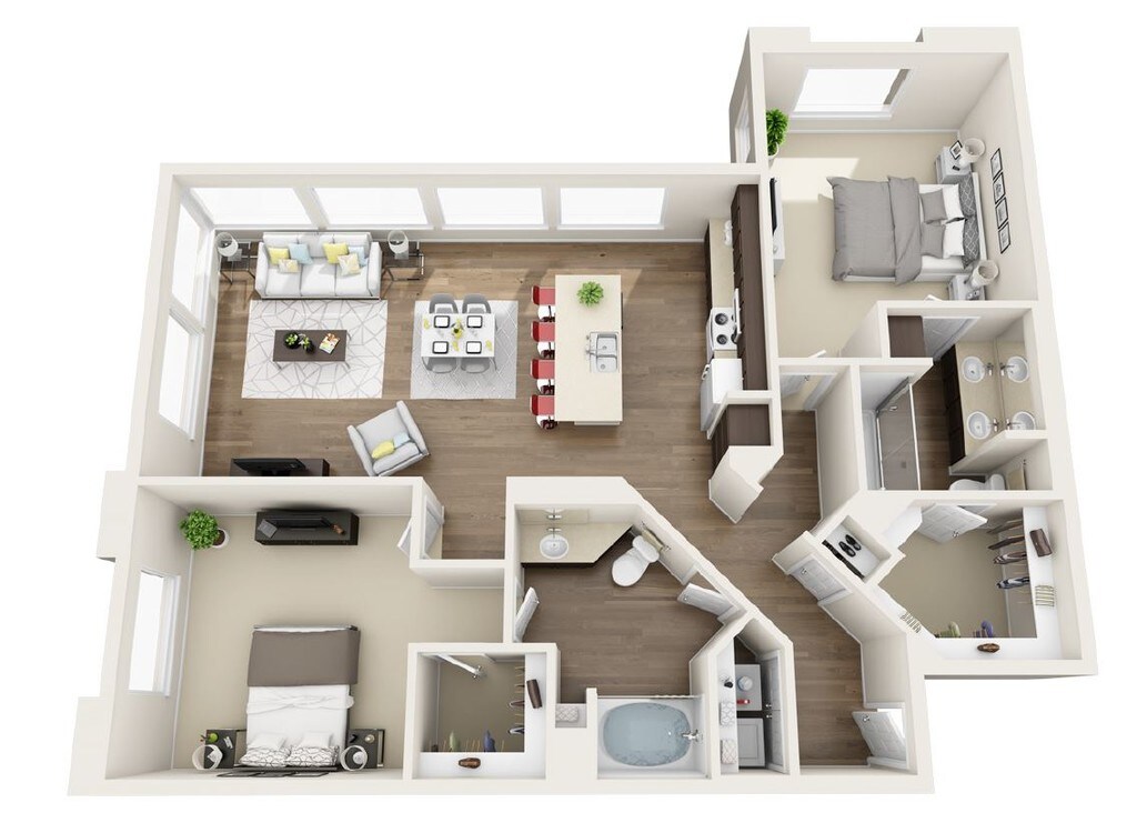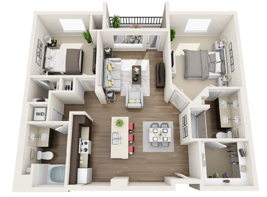 Modelo de apartamento: B2F2 Dormitorios, 2 Baños, 1374 sq ftDisponible Ahora![]()