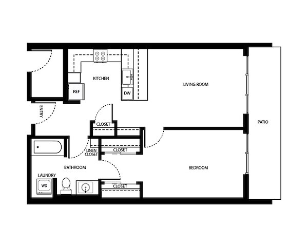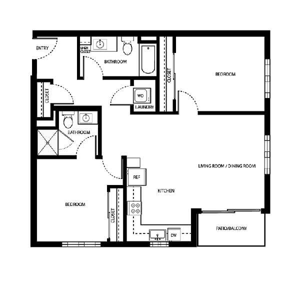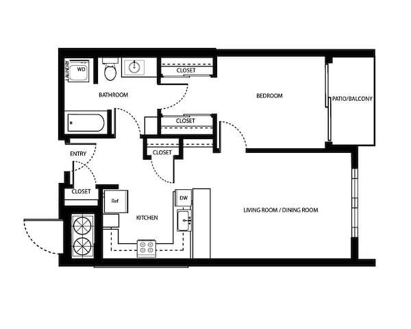 Modelo de apartamento: A1DLlame para Precios1 Dormitorio, 1 Baño, 664 sq ftNo Disponible![]()