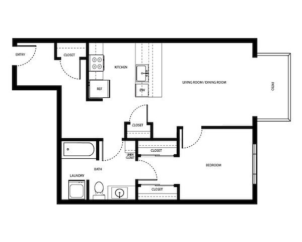 A12 - Plano 1 Unidad de apartamento: 304Modelo de apartamento: A12$2,6991 Dormitorio, 1 Baño, 975 sq ftDisponible AhoraPlano: A1A