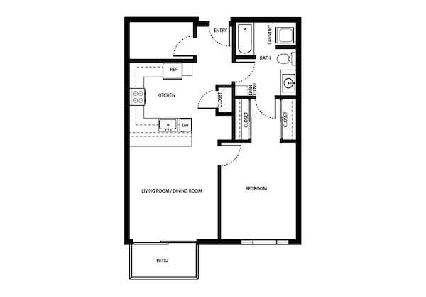 Modelo de apartamento: A1ALlame para Precios1 Dormitorio, 1 Baño, 609 sq ftNo Disponible![]()
