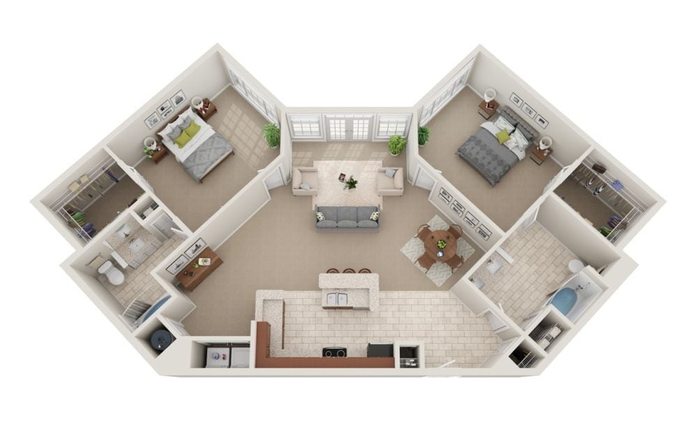 Modelo de apartamento: A1CDesde $1,5781 Dormitorio, 1 Baño, 763 sq ftDisponible Ahora![]()