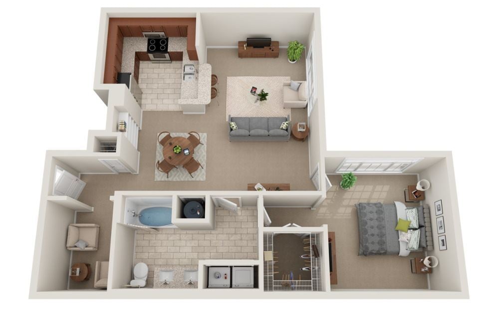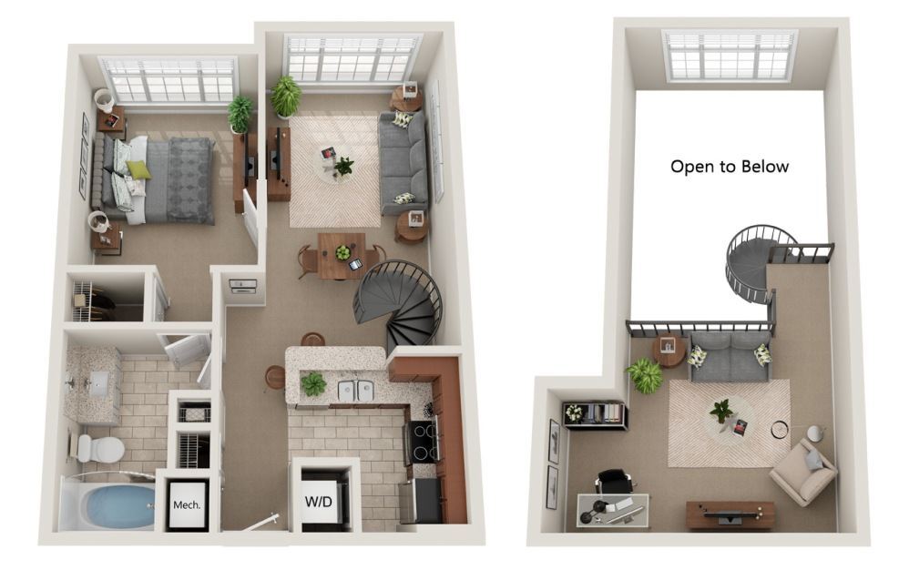 1 Dormitorio, 1 Baño, 713 pies²Disponible AhoraGalería del Modelo