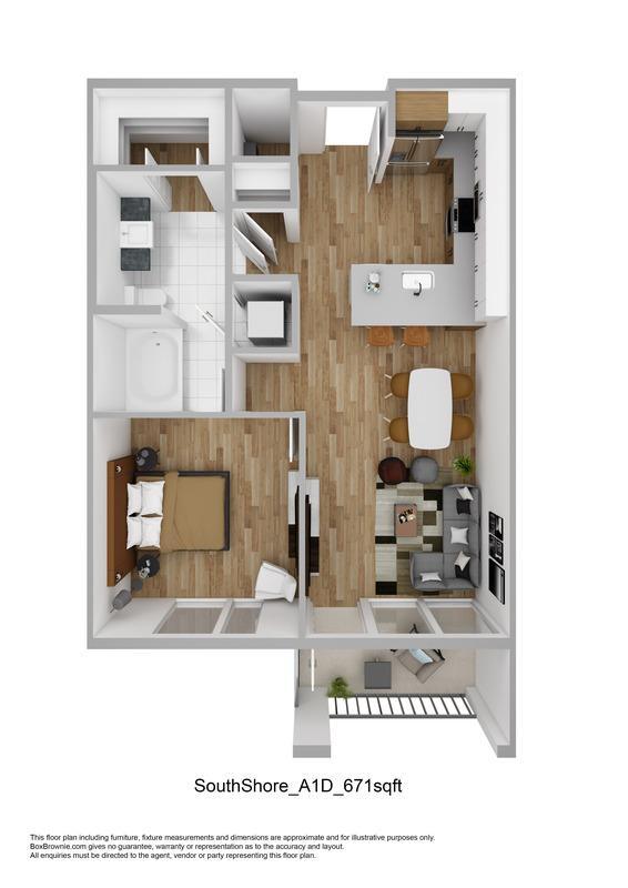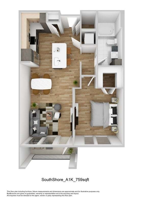 1 Dormitorio, 1 Baño, 746 pies²Disponible AhoraGalería del Modelo