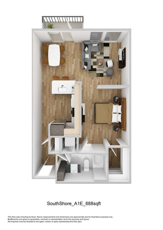 1 Dormitorio, 1 Baño, 688 pies²Disponible AhoraGalería del Modelo