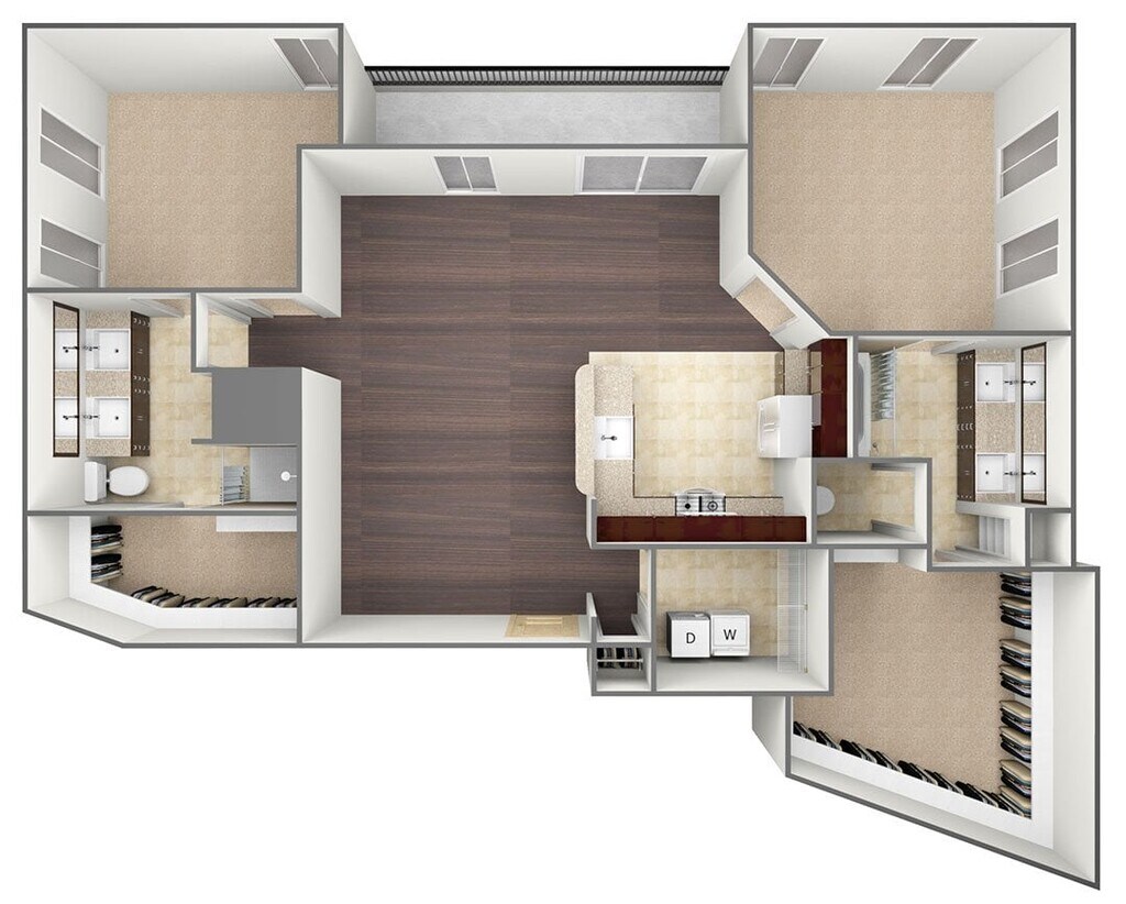 Modelo de apartamento: A6Llame para Precios1 Dormitorio, 1 Baño, 910-1064 sq ftNo Disponible![]()
