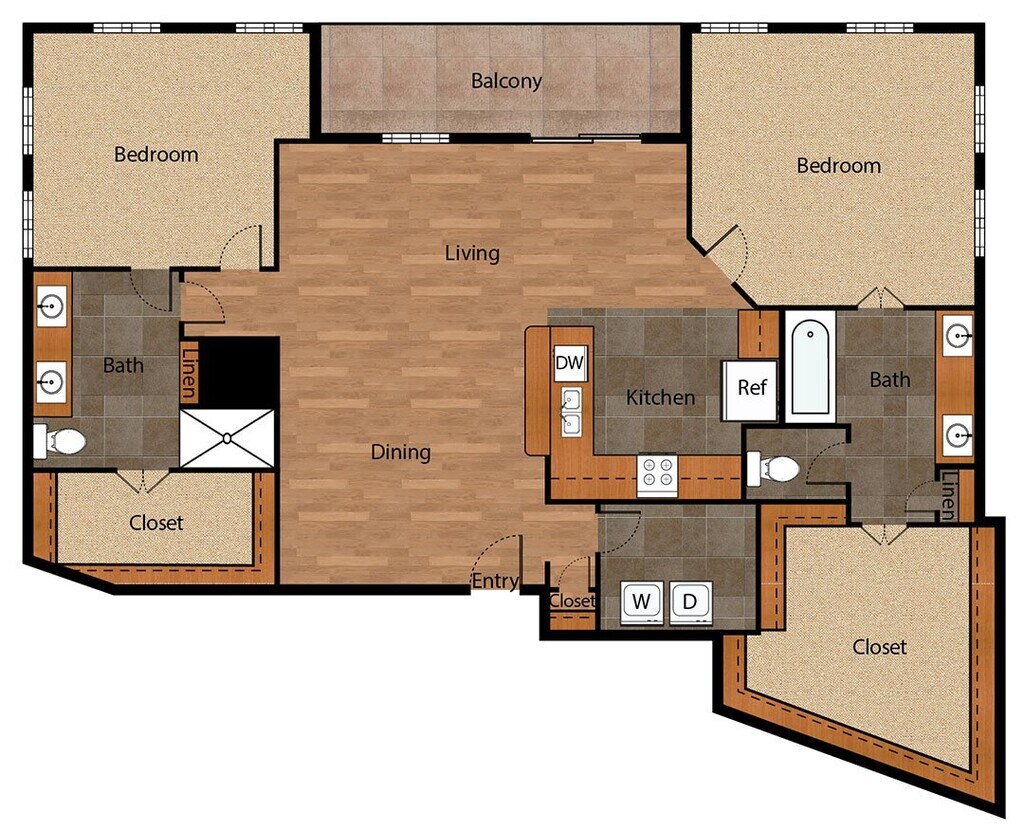 1 Dormitorio, 1 Baño, 910-1064 pies²El más grandeEsta opción tiene las unidades más grandes para este modeloGalería del Modelo
