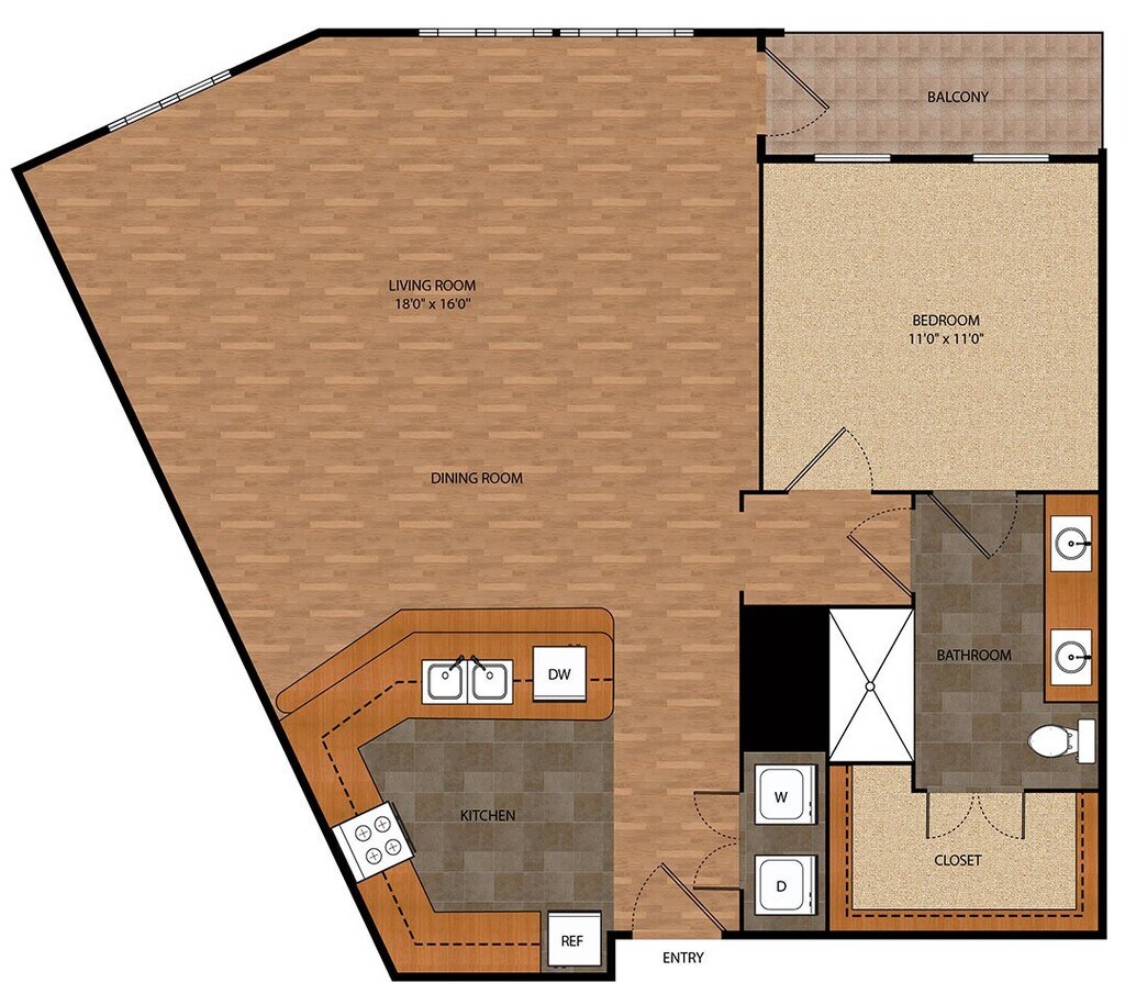 1 Dormitorio, 1 Baño, 825 pies²Disponible AhoraGalería del Modelo