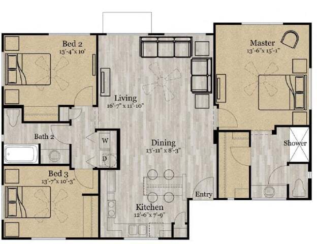 3 Dormitorios, 2 Baños, 1236 pies²Precio Mensual TotalDisponible AhoraGalería del Modelo