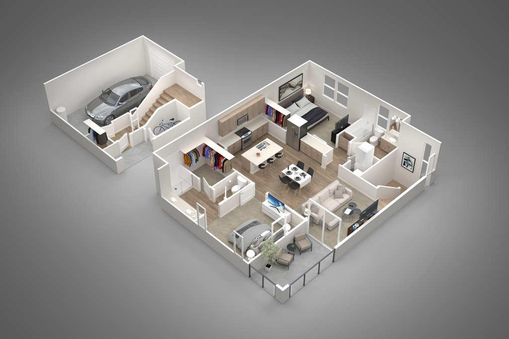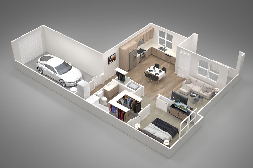 1 Dormitorio, 1 Baño, 831 pies²Disponible AhoraGalería del Modelo