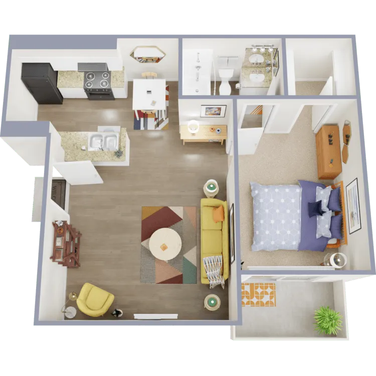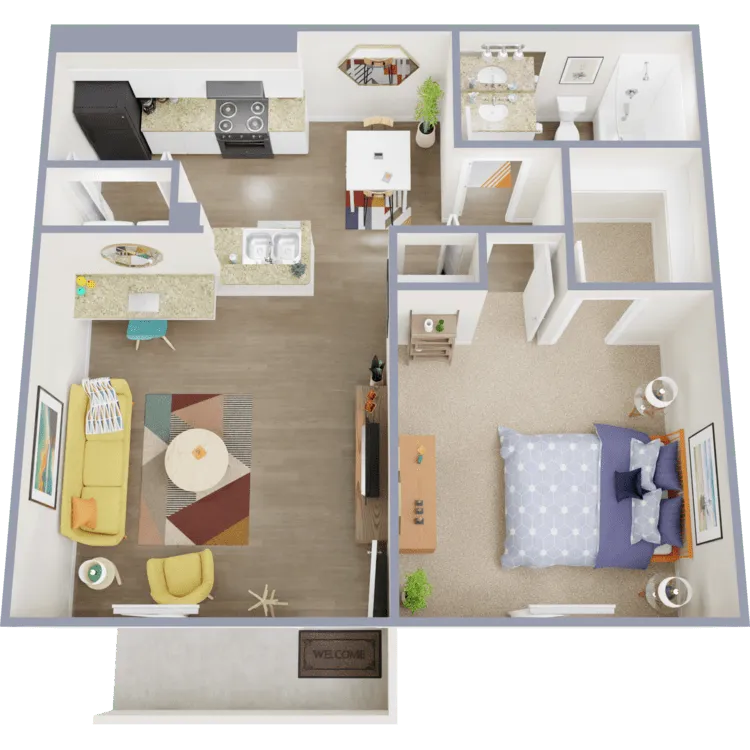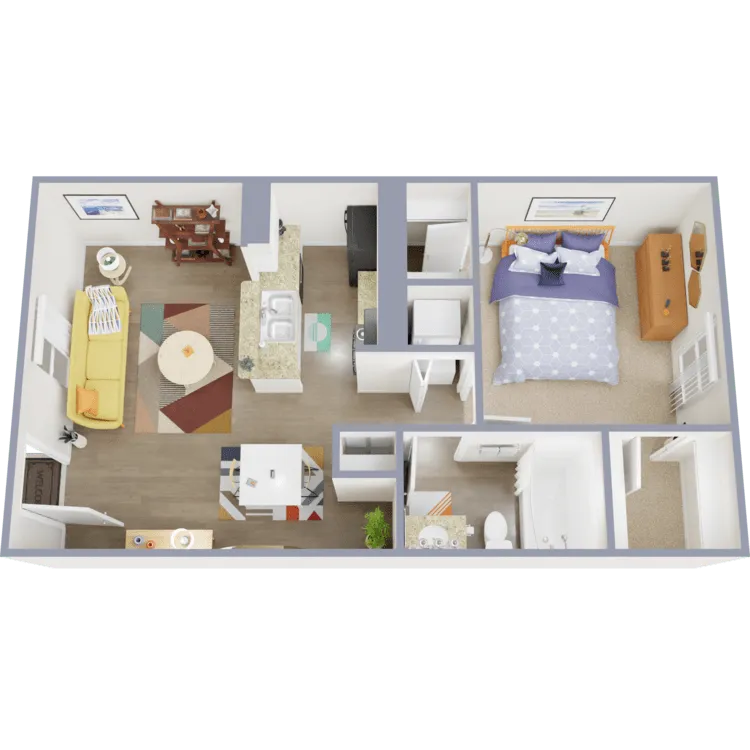 1 Dormitorio, 1 Baño, 531 pies²Disponible AhoraGalería del Modelo