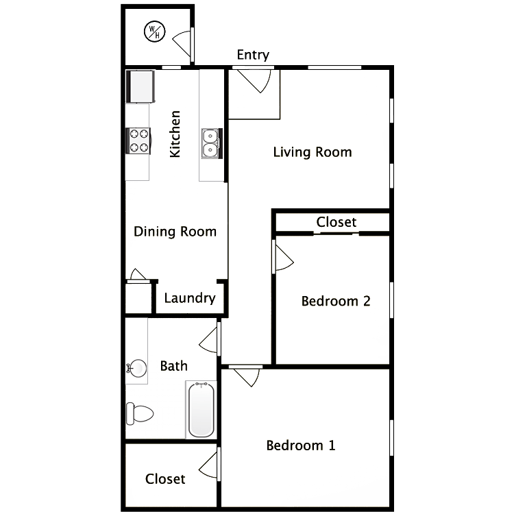 Modelo de apartamento: Two Bedroom One Bathroom 60%$1,1002 Dormitorios, 1 Baño, 912 sq ftDisponible Ahora![]()