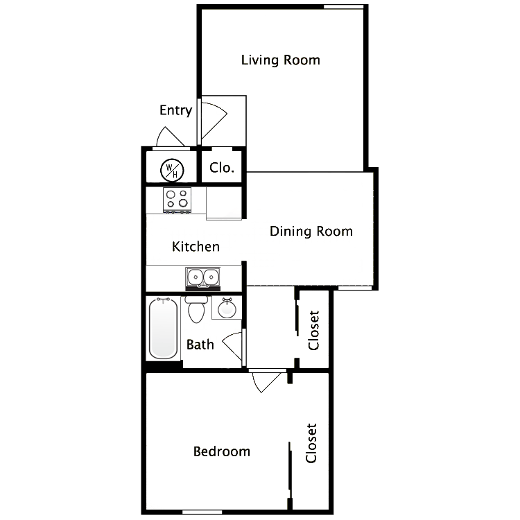 Modelo de apartamento: One Bedroom One Bathroom 60%$8001 Dormitorio, 1 Baño, 589 sq ftDisponible Ahora![]()