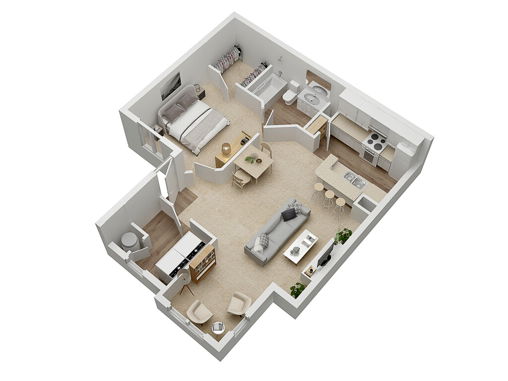 1 Dormitorio, 1 Baño, 709 pies²Galería del Modelo